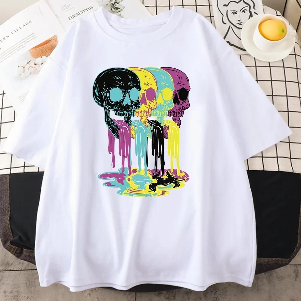 Новинка 2024 года, хлопковые футболки с забавным принтом «4 рвоты от черепов» для унисекс, индивидуальные модные повседневные футболки унисекс с короткими рукавами, одежда унисекс