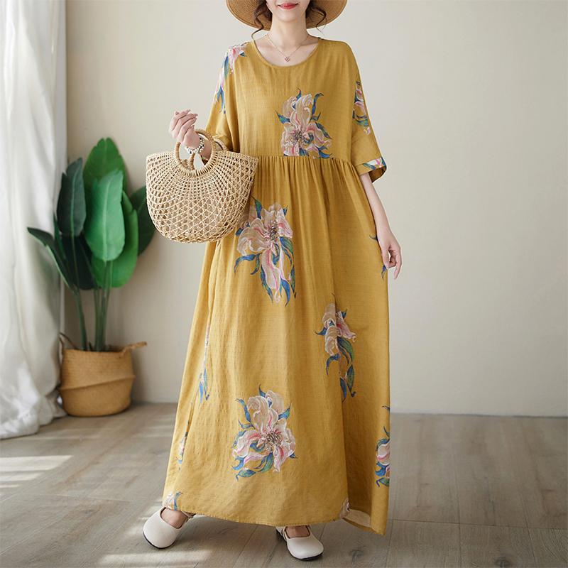 DIMANAF, женское платье больших размеров, новинка 2024, льняное свободное платье с коротким рукавом, летнее винтажное платье, богемные базовые длинные платья