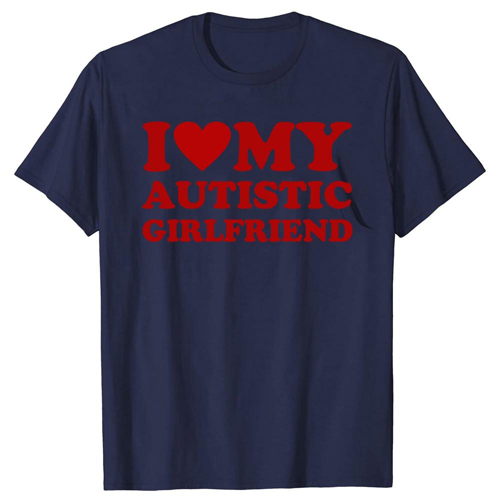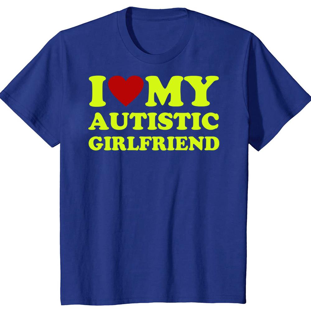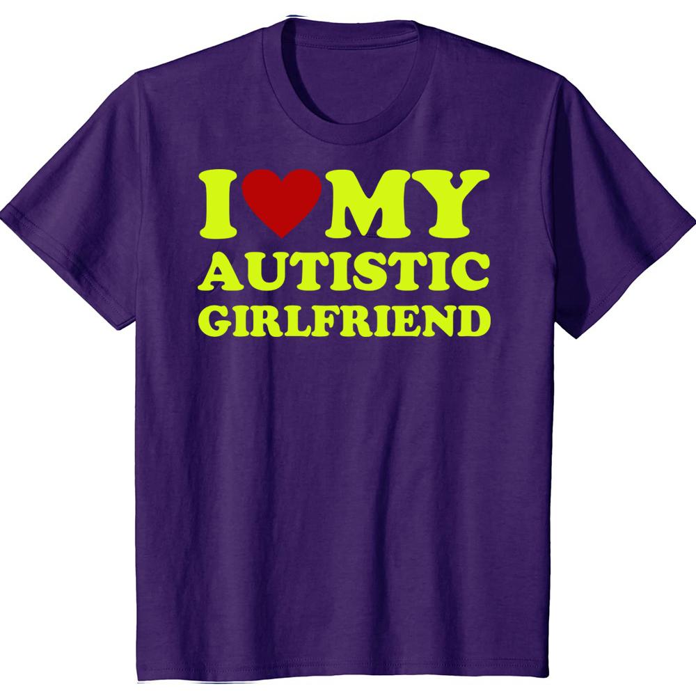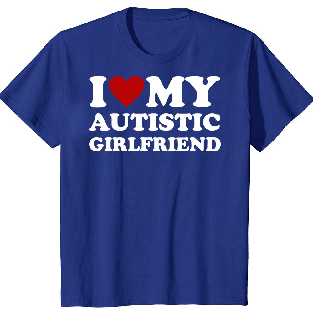 Футболка «Я люблю свою аутичную подругу», забавные футболки для бойфренда с месяцем осведомленности об аутизме, повседневные базовые футболки с круглым вырезом