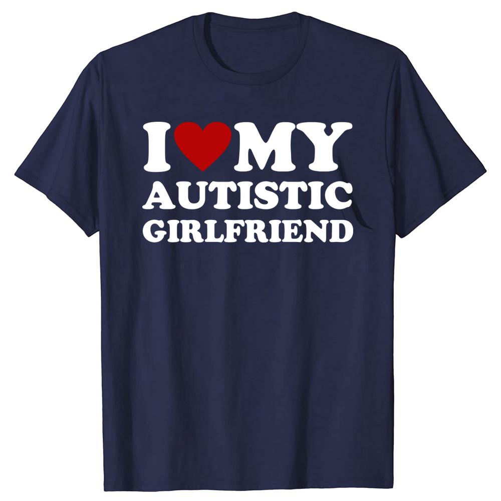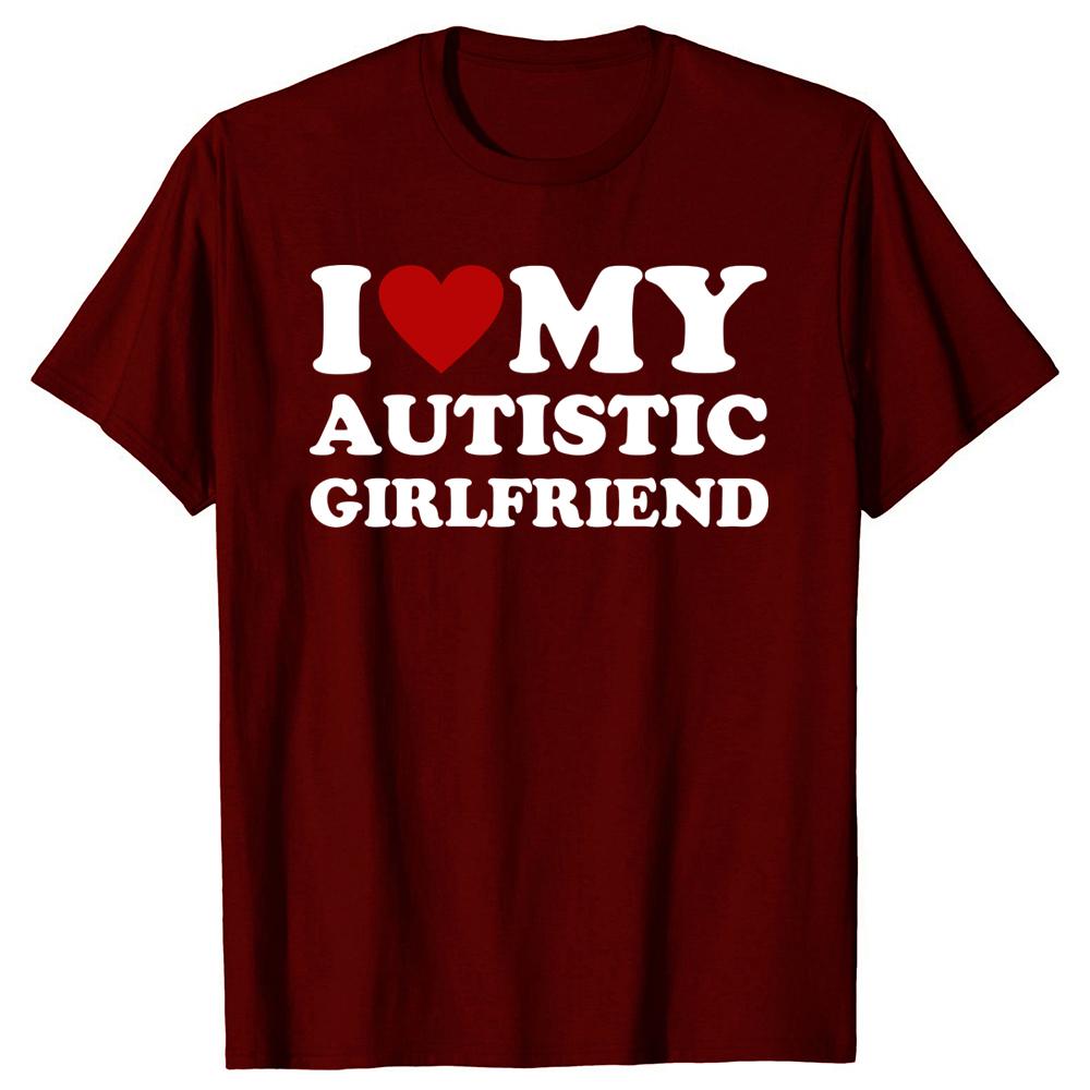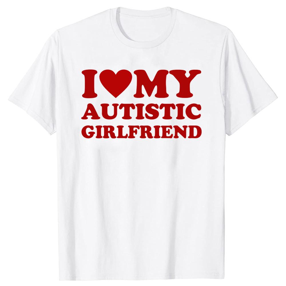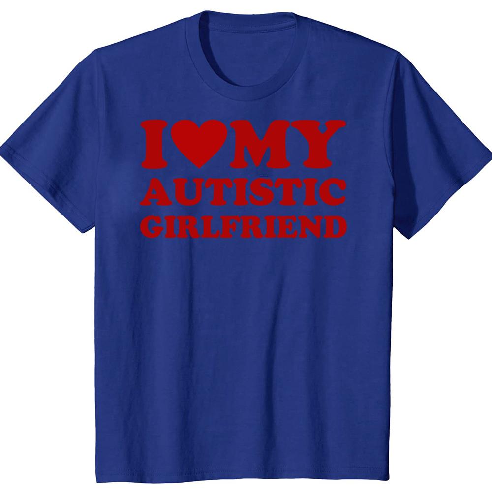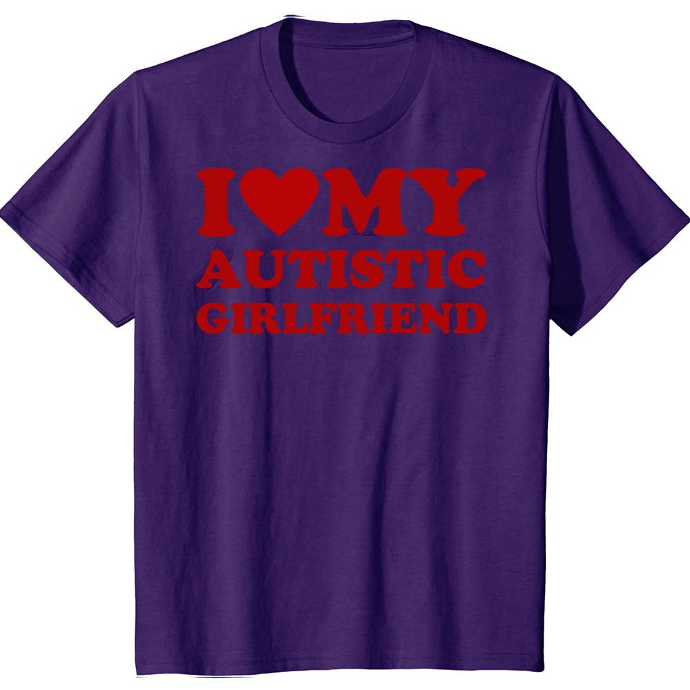Футболка «Я люблю свою аутичную подругу», забавные футболки для бойфренда с месяцем осведомленности об аутизме, повседневные базовые футболки с круглым вырезом