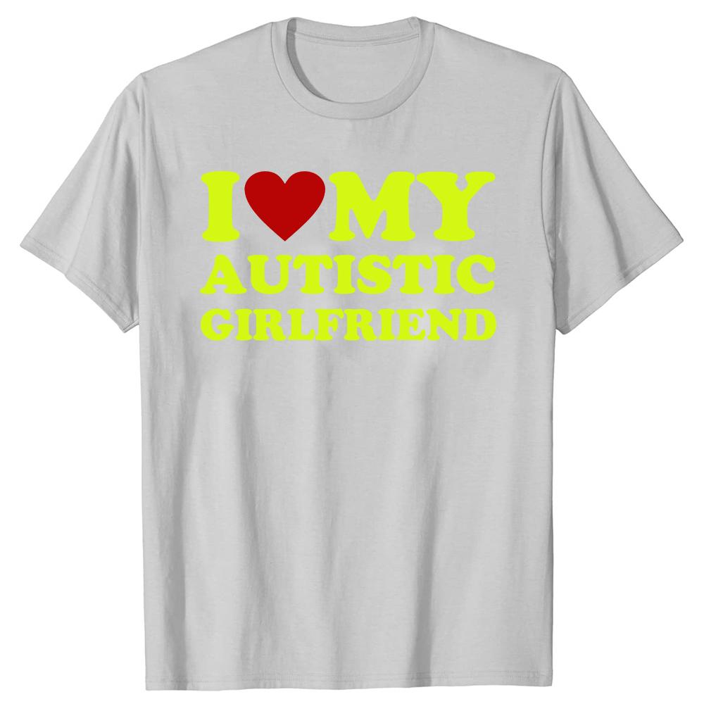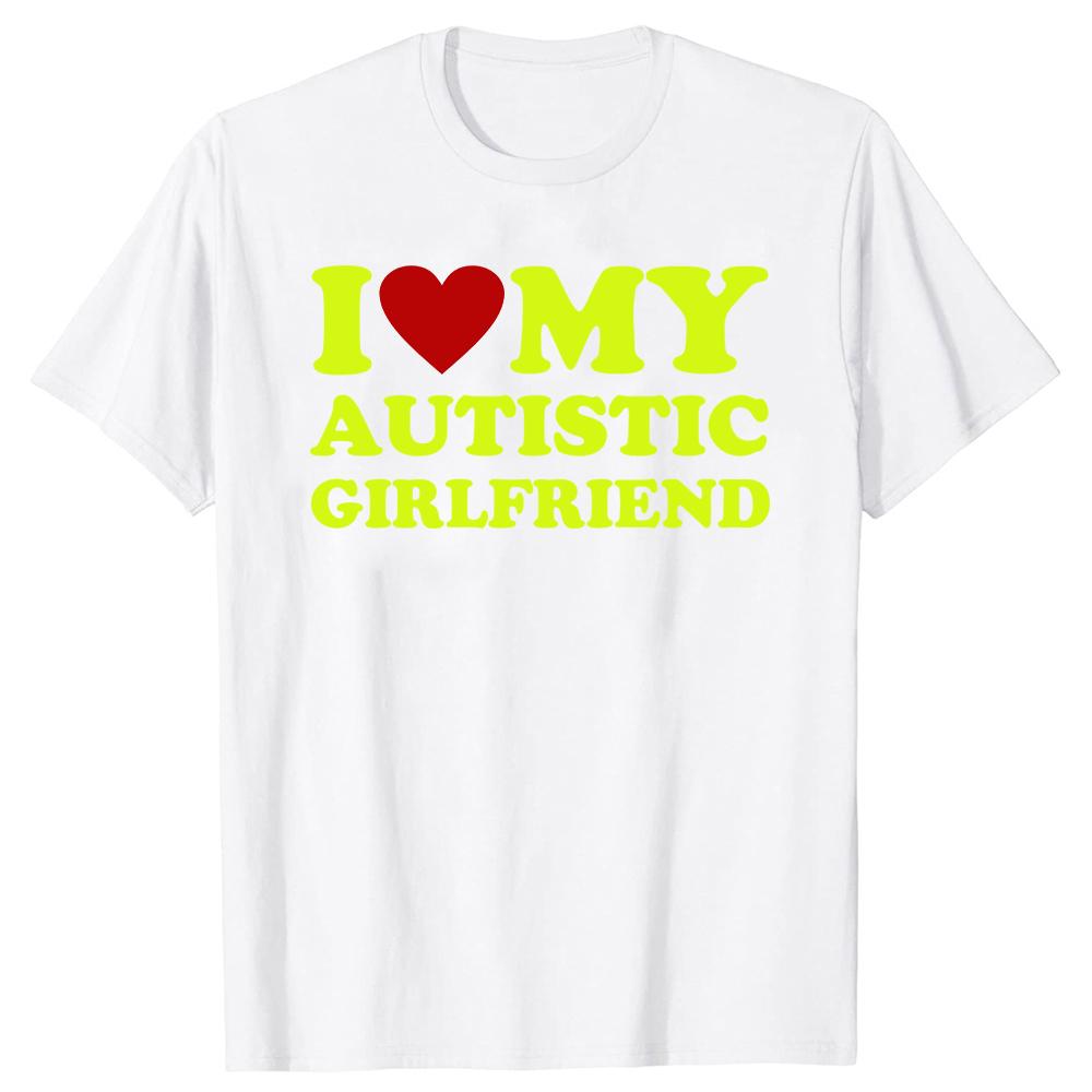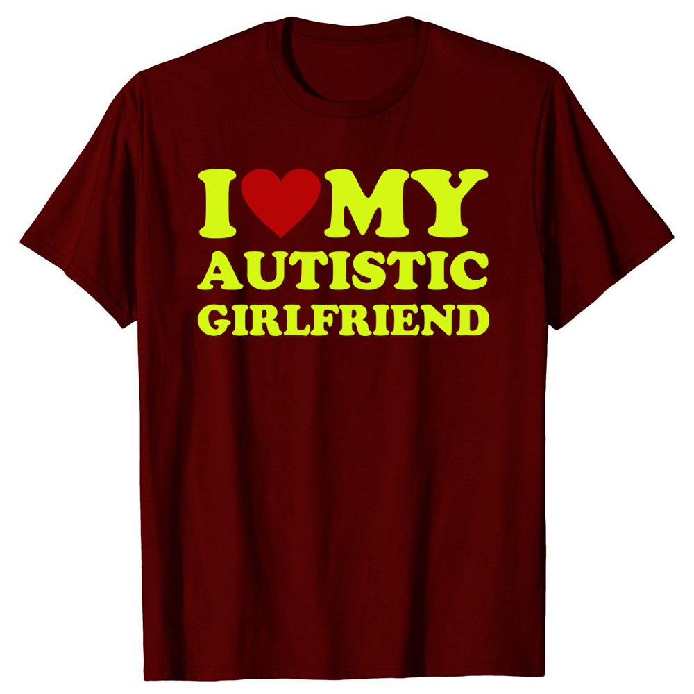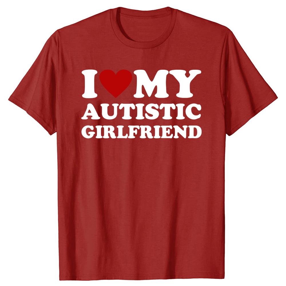 Футболка «Я люблю свою аутичную подругу», забавные футболки для бойфренда с месяцем осведомленности об аутизме, повседневные базовые футболки с круглым вырезом