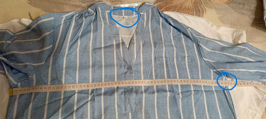 Рубашка симпатичная, цвет темнее, чем на картинке, больше синего, а хотелось больше голубого. Размер мой, НО она сшита на фигуру скорее мальчиковую, где узкие бедра, а у меня бедра побольше, чем у модели, поэтому сверху все хорошо, а на бедрах в натяг, буду думать ...наверное надо по обеим сторонам аккуратно сделать разрез по бокам..., тогда будет лучше смотреться. Я брала М, если бы я взла больше размер, то сверху было бы как балахон, не красиво. Так что имейте ввиду, что эта рубашка на узкие бедра, чтобы не ошибиться с размером.
