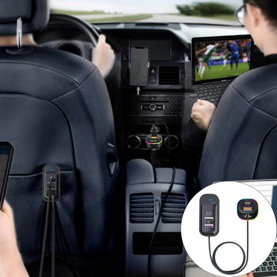 Это зарядное устройство, оснащенное 5 выходными портами, позволяет одновременно заряжать устройства как в переднем, так и в заднем ряду.. Входящий в комплект удлинительный кабель длиной 1,5 метра обеспечивает удобный доступ для одновременной зарядки до 5 электронных устройств.. Благодаря общей мощности 105 Вт вы можете быстро и без проблем заряжать несколько устройств.