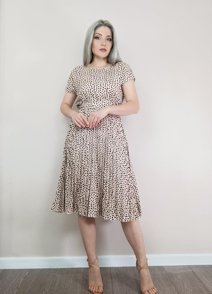 Женское леопардовое вишневое кружевное плиссированное платье весна-лето средней длины с коротким рукавом