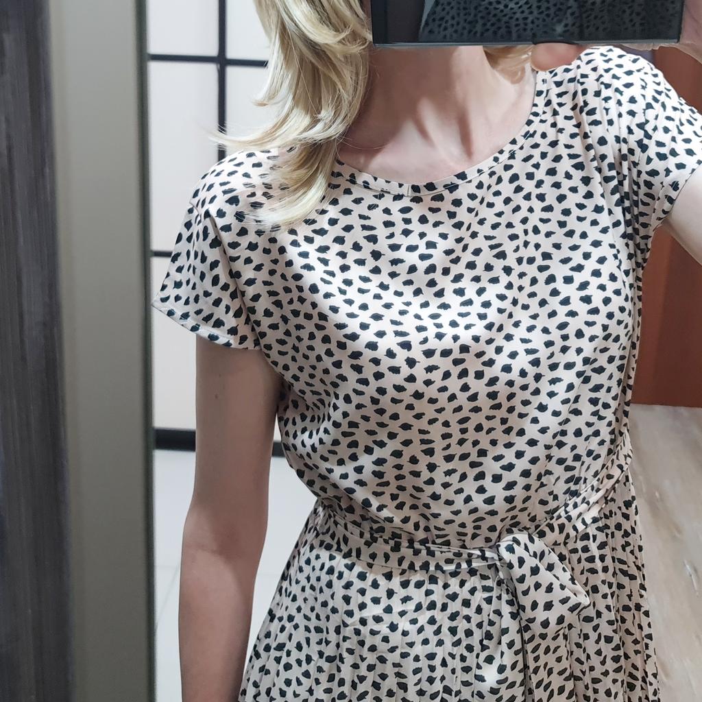 Легкое летнее платье 🌿. У меня уже второе такое. Разница только в расцветке. Здесь - ненавязчивый, такой спокойный леопард. Платье мне нравится очень! Кстати, эта модель подходит и на высокий рост тоже, талия на месте. Платье романтичное и женственное. Верх свободный. Юбка - плиссе. В комплекте поясок из ткани. Платье здорово стройнит. Если есть проблемы с бёдрами, поможет скрыть. Материал легкий, приятный к телу, не светит, красиво драпируется. Пошив аккуратный, фабричный. На рост 182 см. параметры 92-72-92 взяла размер L. Сидит немного свободно сверху, зато талия на месте. Брака и неприятного запаха не было.
