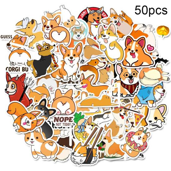 50шт мультфильм собака корги клей водонепроницаемый стикер наклейки чемодан декор на холодильник