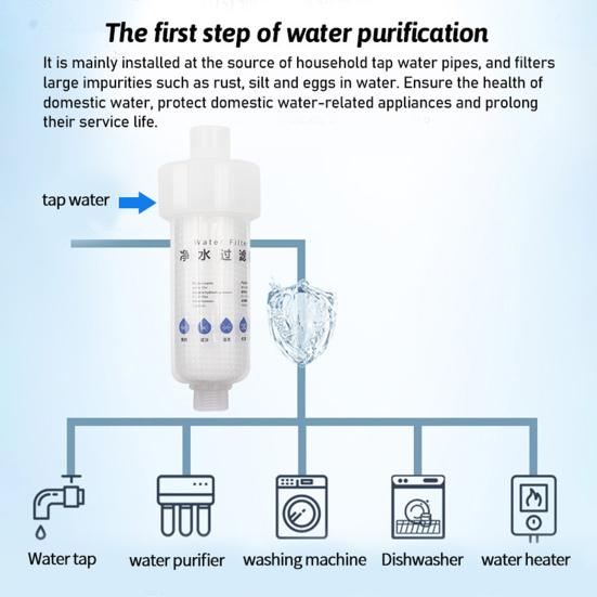 Его можно использовать для фильтрации осадка, ржавчины, водорослей, мотыля, паразитов и т. Д.. для очистки воды. И он очень подходит для душевых, стиральных машин, водонагревателей и так далее.