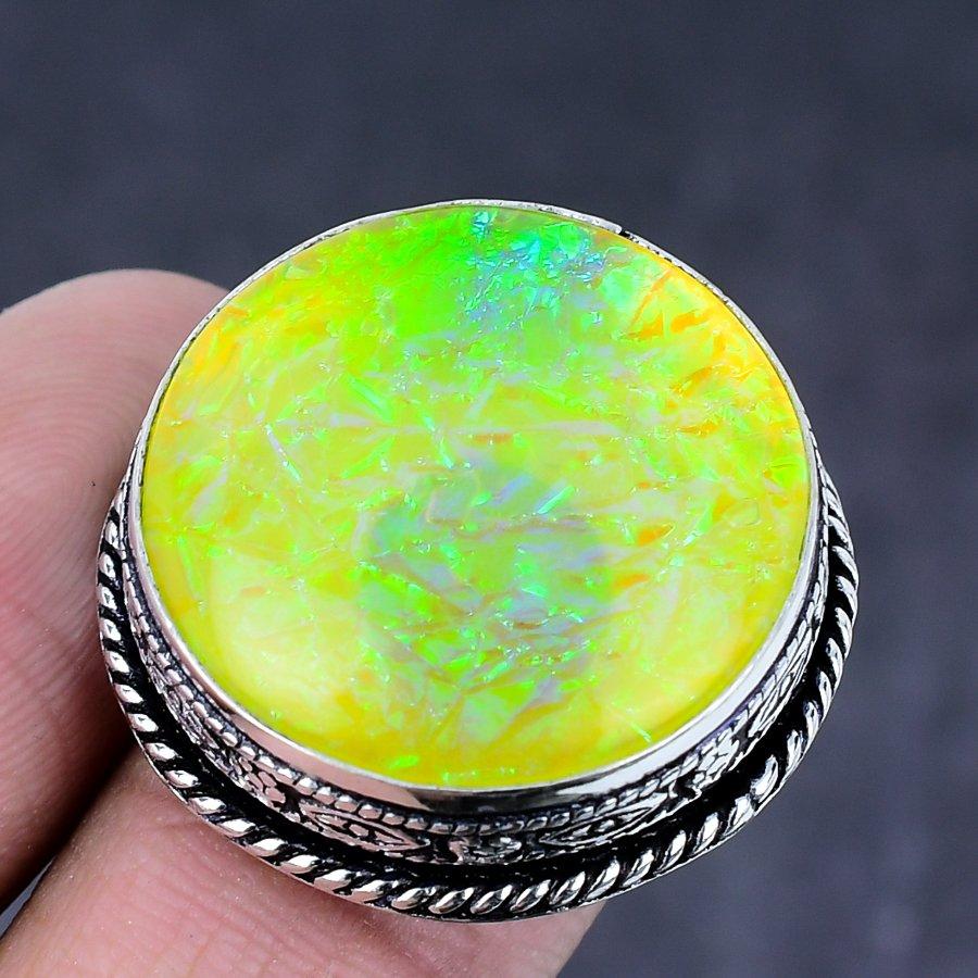 Кольцо из натурального желтого триплетного опала с драгоценным камнем ручной работы из серебра 925 пробы S.7 U3a03