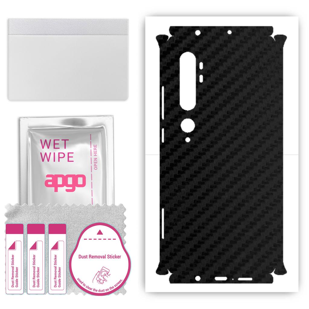 apgo Protective Skin Sticker for the back+sides compatible with Xiaomi Mi Note 10, Full Wrap Film, Foil, Vinyl - Pattern Carbon Black
