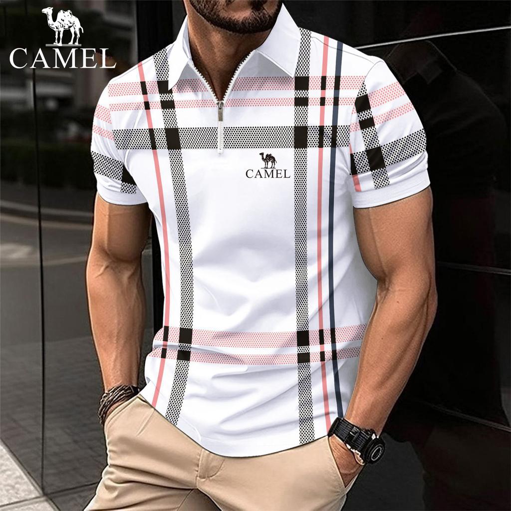 Camel 2024 летняя мужская клетчатая полосатая рубашка-поло на молнии со спортивной вышивкой, брендовая рубашка-поло больших размеров