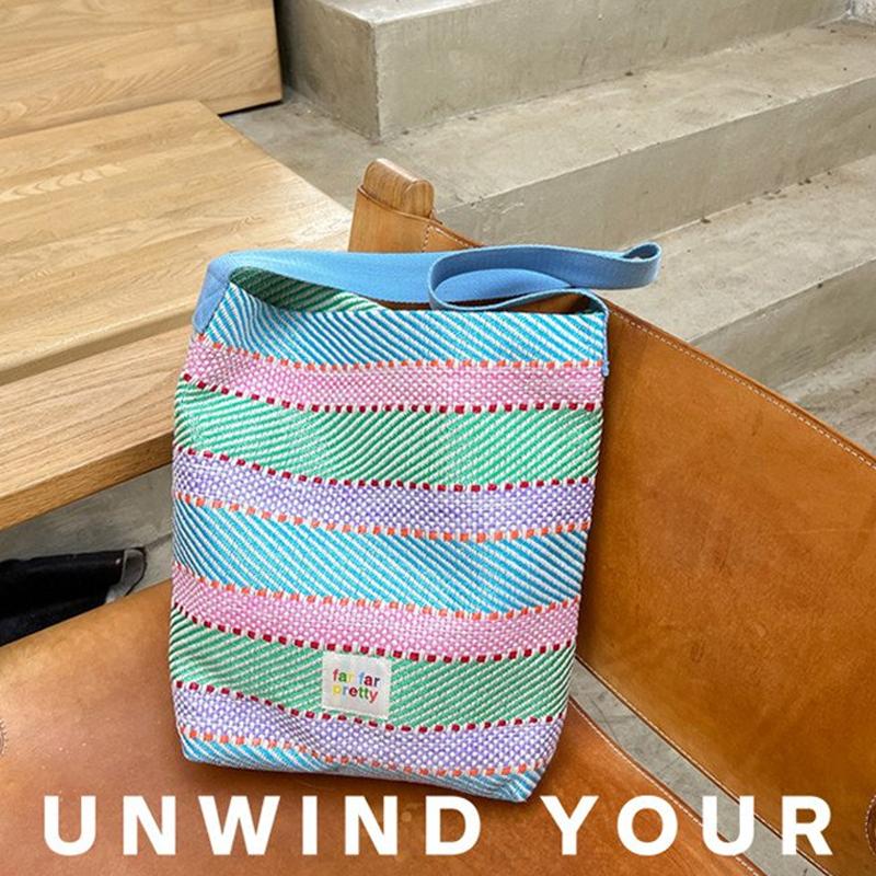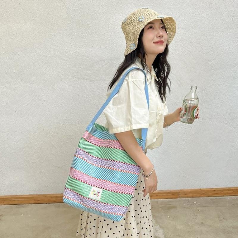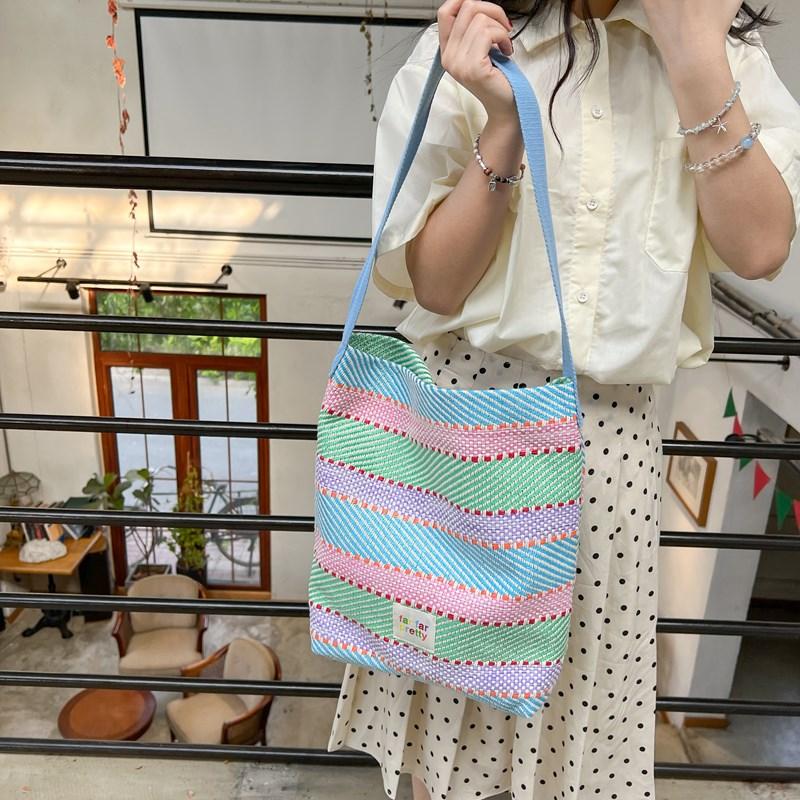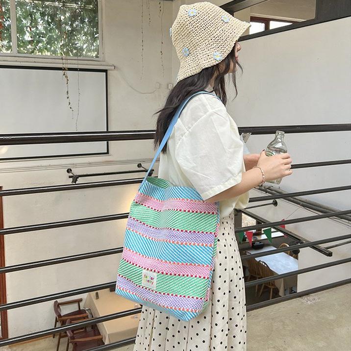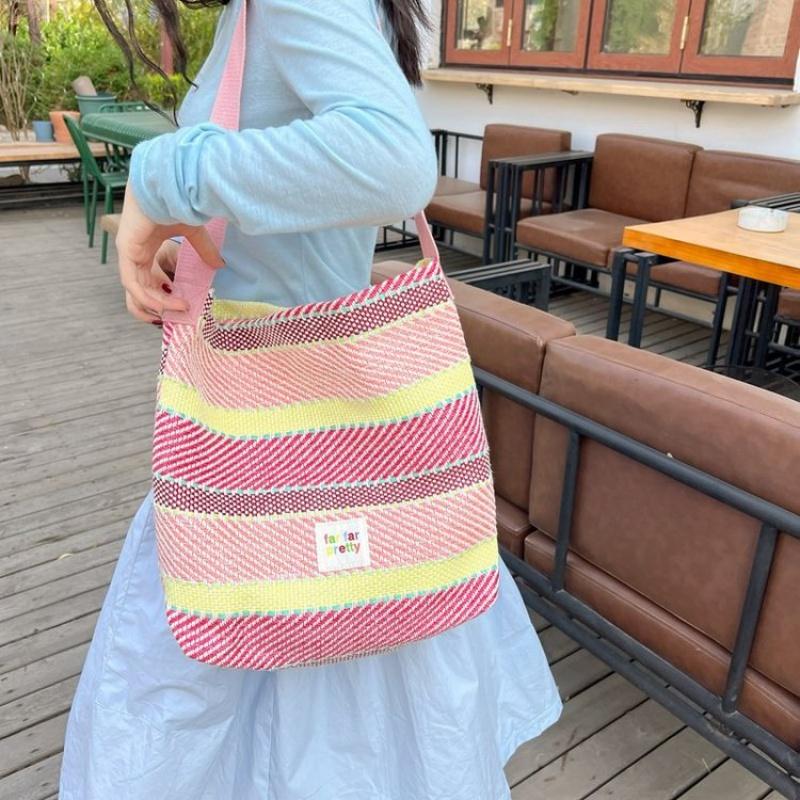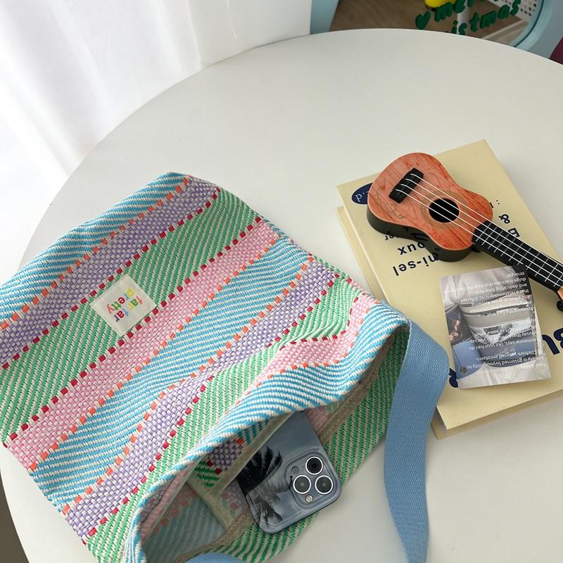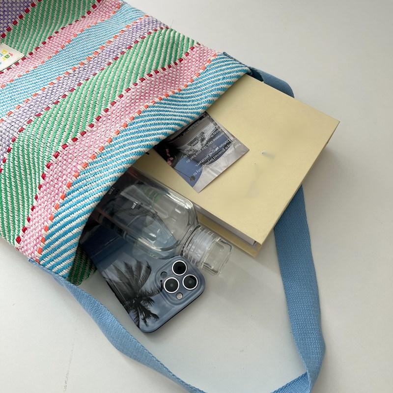 2024 летние женские красочные большие вместительные тканые сумки-тоут на одно плечо для женщин, цветная полосатая сумка
