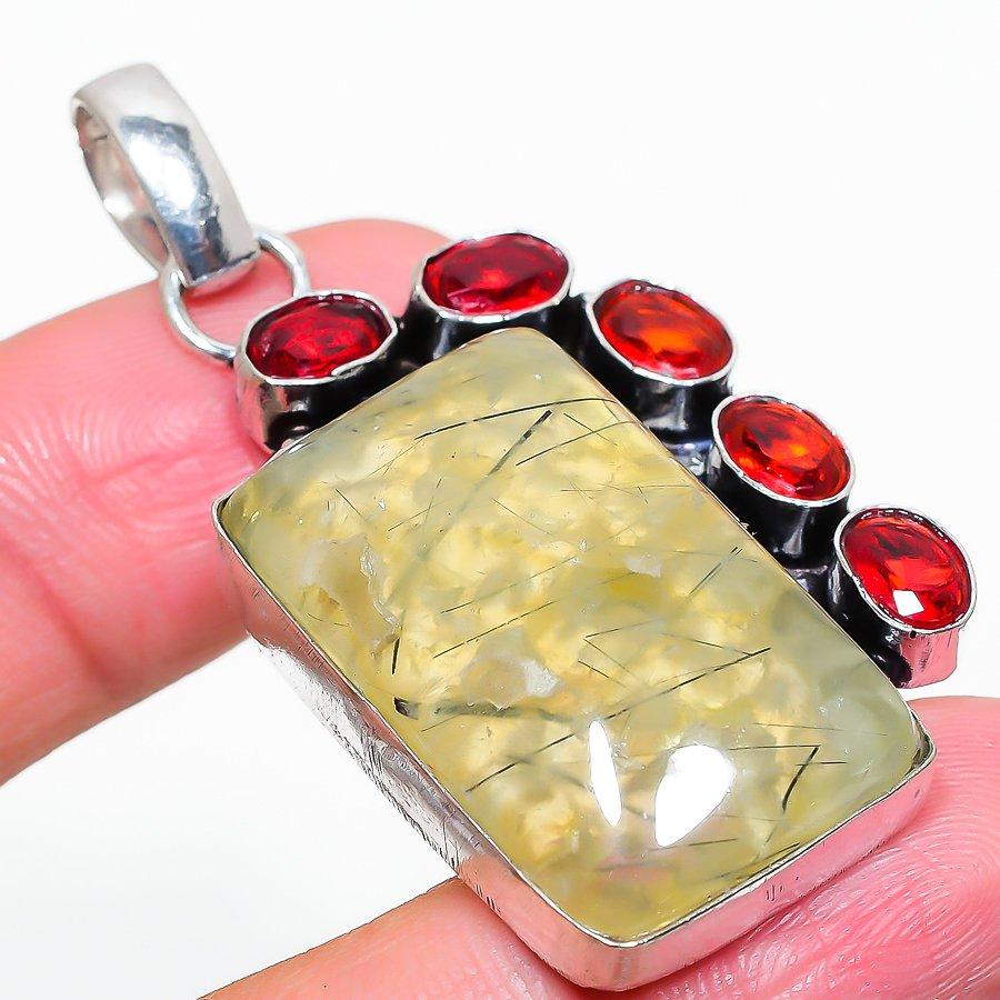Подарочный кулон из стерлингового серебра 925 пробы с натуральным пренитом и гранатом 2,21 дюйма