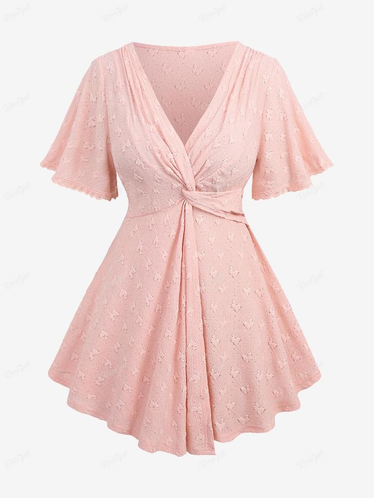 Rosegal Plus Размер Кружевная отделка Поворотная бабочка Вышивка крючком Полый текстурированный топ — купить товар онлайн с бесплатной доставкой по всему миру!