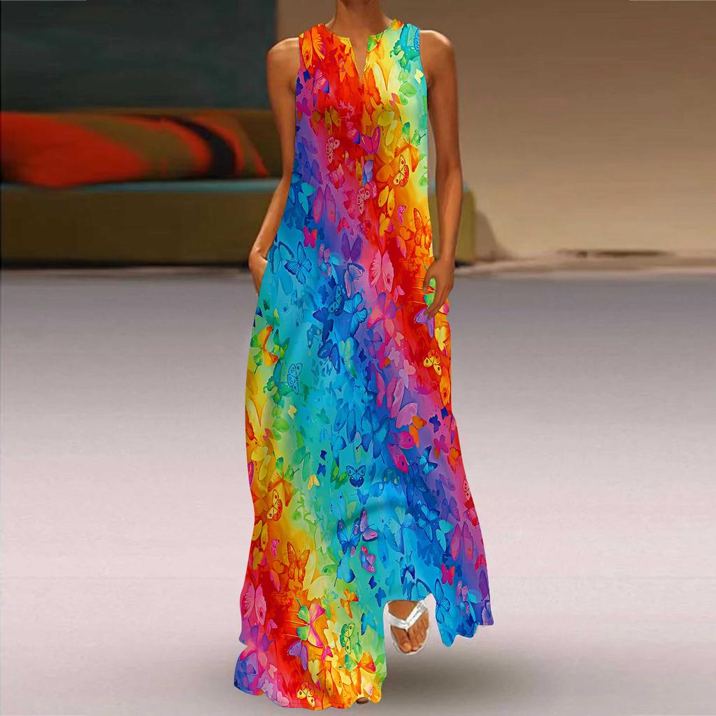 Жен. Платье А-силуэта Макси Длинные без рукавов Синий В полоску С принтом Осень/зима V-образный вырез Ретро Стиль Элегантный