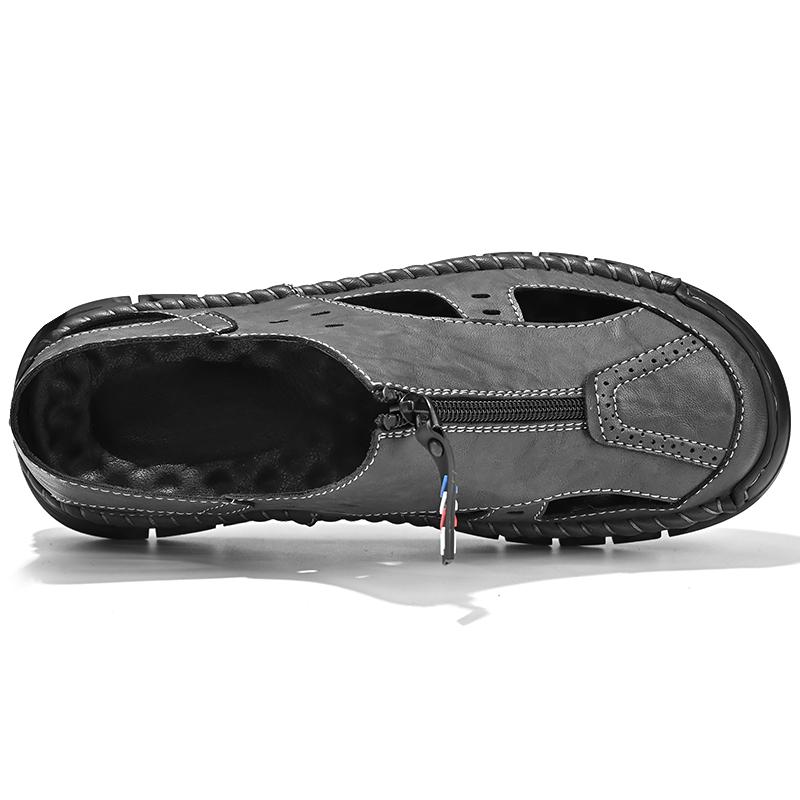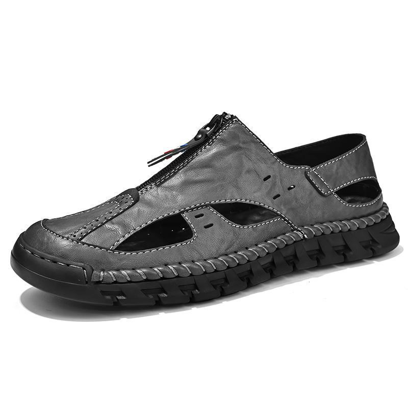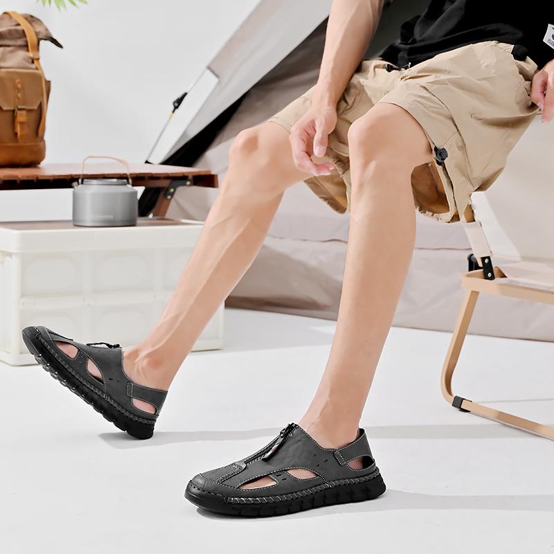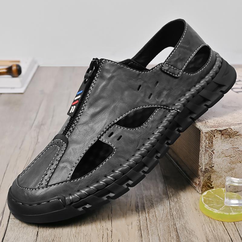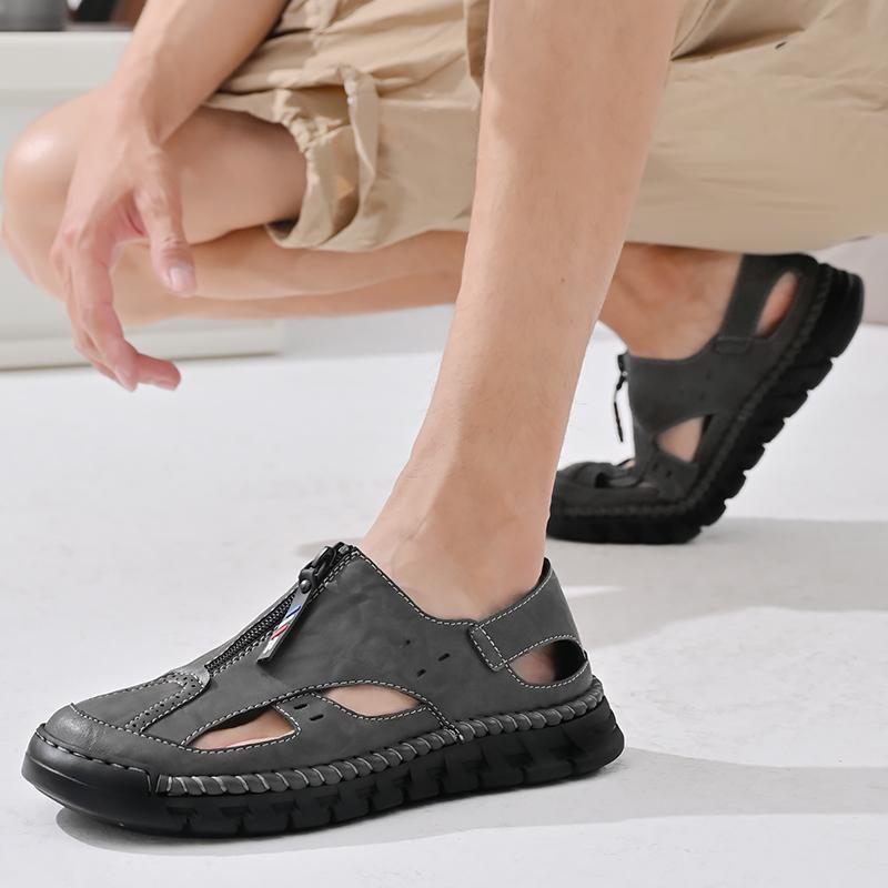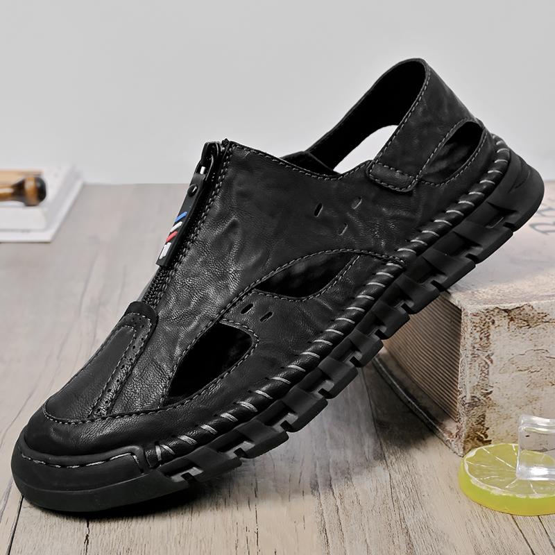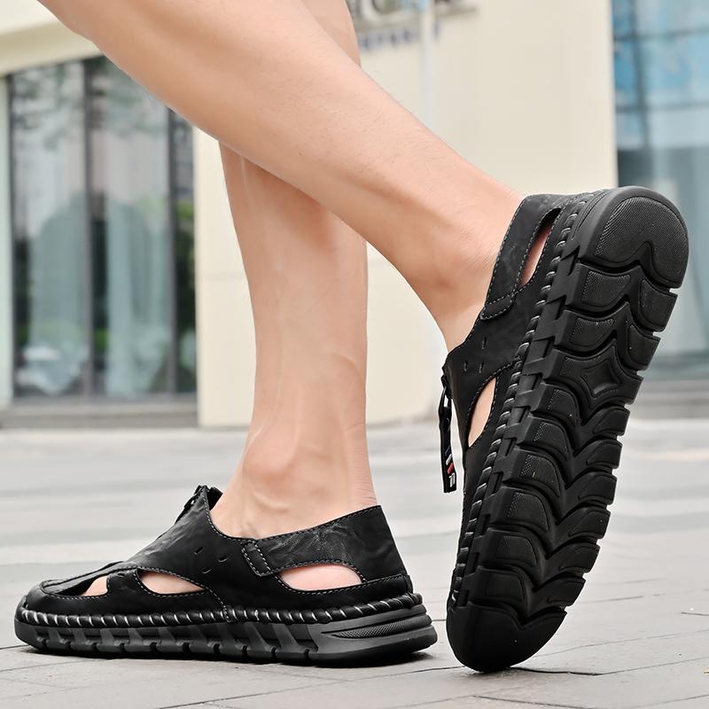 Мужские сандалии из кожи с закрытым носком, уличные летние противоскользящие пляжные сандалии