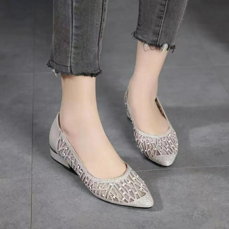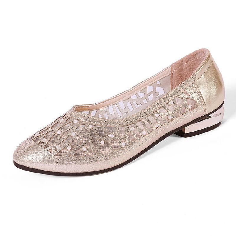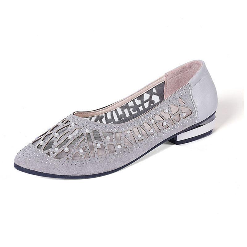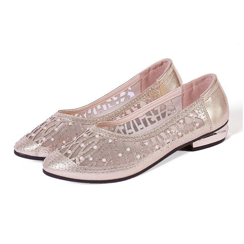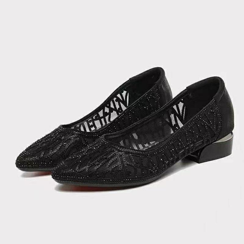 Босоножки на низком каблуке с полой сеткой, украшенные стразами, с острым носком, без шнуровки, женские туфли-лодочки из мягкой кожи, дышащие, легкие, удобные