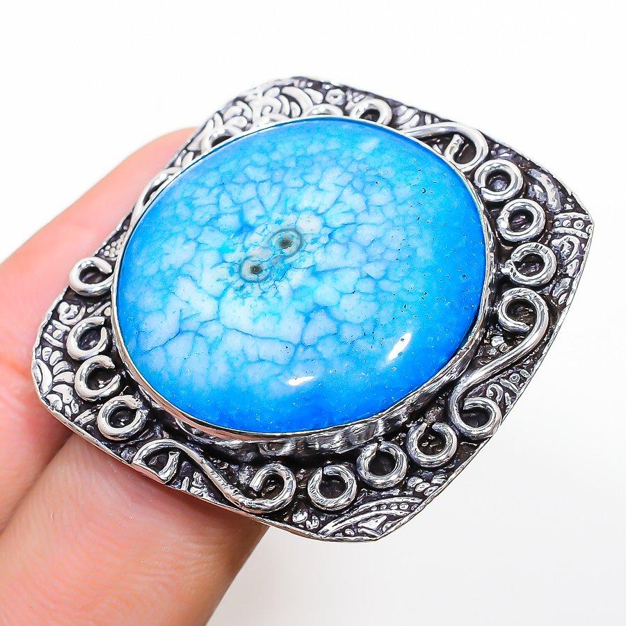 Подарочное кольцо из стерлингового серебра 925 пробы с натуральным синим солнечным кварцем, размер 10 b4S59