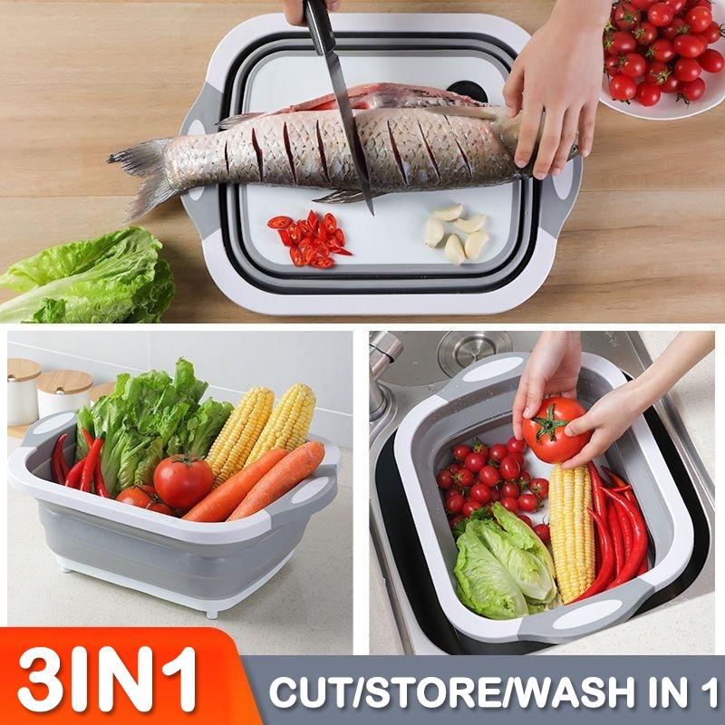 Многофункциональная складная разделочная доска, корзина 3 в 1, раковина, раковина для мытья посуды, портативная разделочная доска для кемпинга, 40x30x14 см