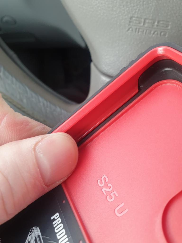 Точно как на каринке. На вид ну ооочень прочный, толстые жесткие стенки. Если не влезает не думайте что он на другую модель смартфона, просто одевать на свой смартфон такой жесткий футляр серьезная задача. Я его уже втиснул на свой телефон, выглядит как брутальный защищенный кирпич (толщина стенок 2-3 мм, защитная рамка выступает над экраном тоже на 2-3 мм), если вам нужно что-то изящное то ищите другой. Для тех, кто работает на стройке или находится в суровых полевых условиях. П. С. Как снимать его буду потом еще не знаю