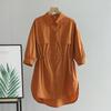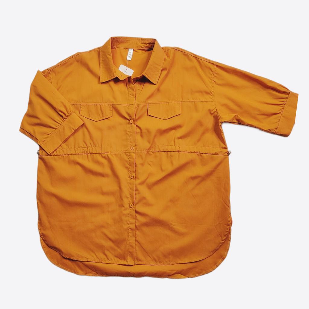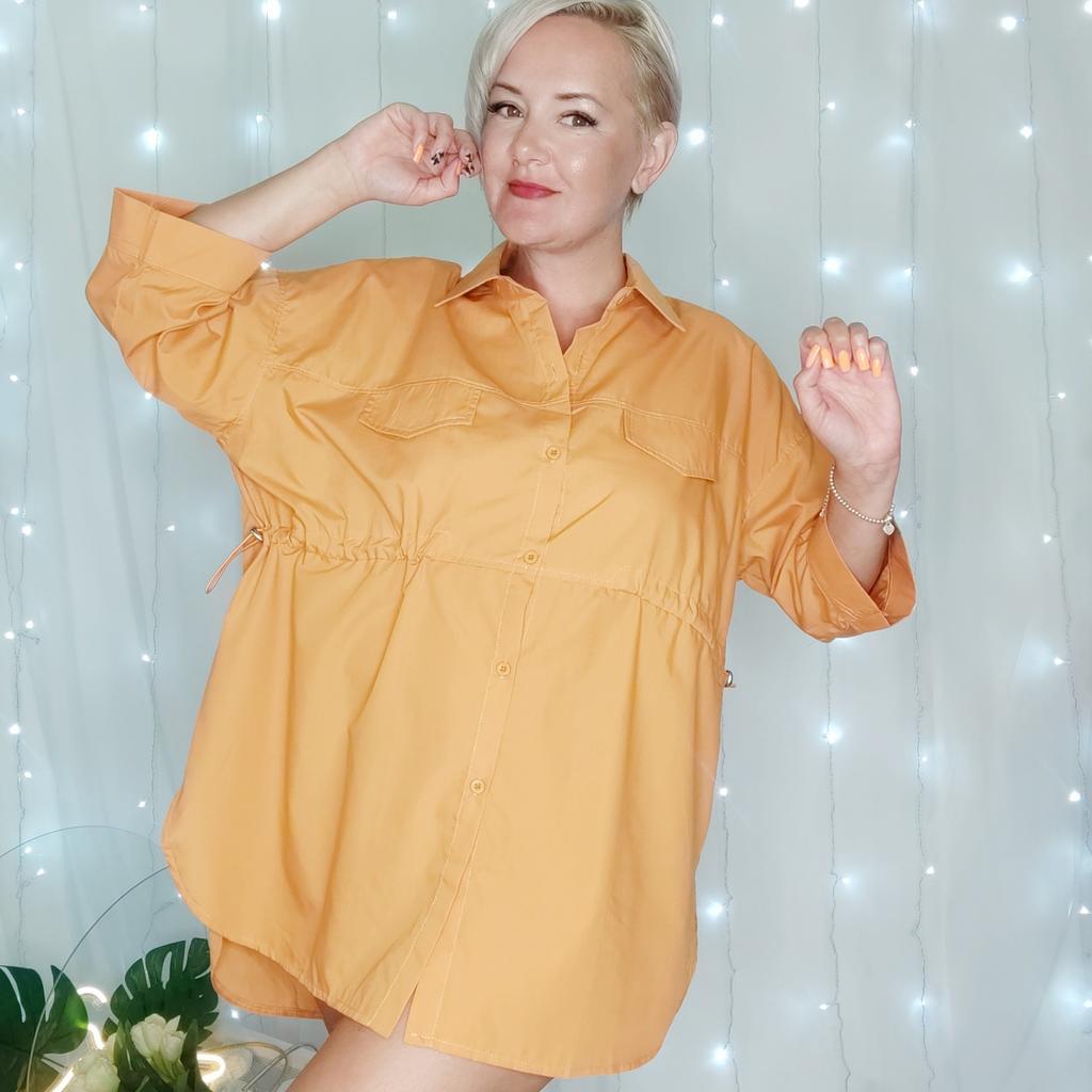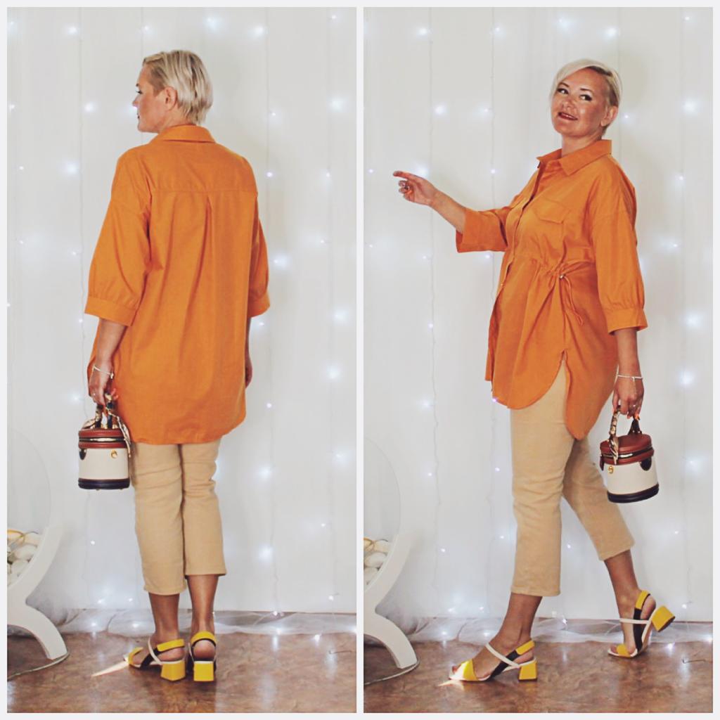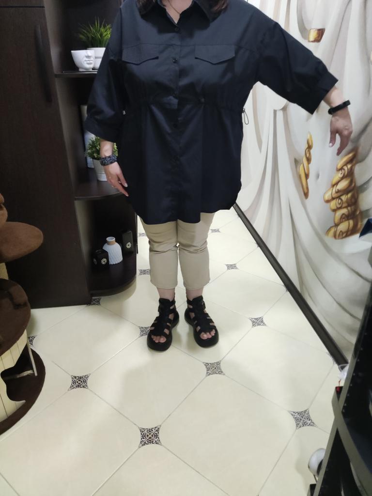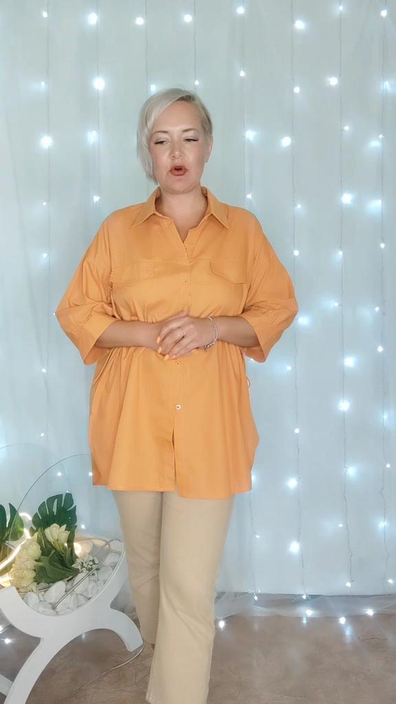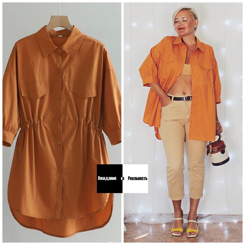 Оранжевая рубашка свободного кроя! Привет! Рубашечка просто загляденье! Удобная, свободная, классная! ‼️добавила разговорное видео, там больше деталей‼️ Ткань: Хлопок - 100%. Ткань тонкая, не тянется, мнётся. Дизайн: Очень свободная рубашка с хорошей длиной, по спинке чуть длиннее чем спереди, подол скругленный. Застегивается спереди на ряд пуговиц, по бокам (только спереди) резинка с фиксаторами что бы подчеркнуть линию талии. На груди два клапана имитация карманов. Линия плеч спущена , рукава доходят ниже локтя. Нюансы: Для себя не нашла. Качество: Супер к пошиву никаких претензий нет. Сезон: Лето/весна Цвет: Реальный цвет получился на 3/4/5 моих фото, она не такая как на фото продавца не на столько темный оранжевый, но и не яркий. Размер: На мне XXXL Мои параметры: рост 172 см 98/76/106 см Детали: Длина 79/85 см Плечи 63 см Длина рукава 31 см ОГ 142 см ОТ 128 см ОБ 144 см Резюмирую: Носить ее можно абсолютно по разному и в любых вариантах она смотрится прекрасно! Буду рекомендовать 👍 Я не прощаюсь, M_K Оранжевый_хлопок