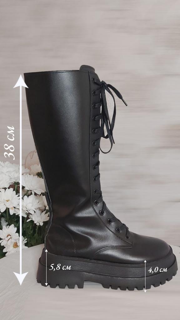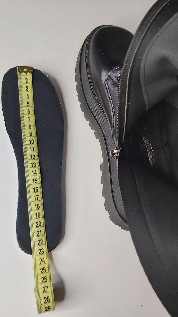 Женские высокие ботинки 👢 ◾ботинки из искусственной кожи чёрного цвета; ◾был сильный и стойкий запах кирзы, который выветривался около месяца на свежем воздухе; ◾полностью от верха до низа на шнуровке, но сбоку имеется молния; ◾ботинки на толстой подошве-платформе. Спереди толщина 4,0 см, на пятке - 5,8 см; ◾полная высота с подошвой - 38,0 см; ◾носок круглый; ◾высокий "язык" внутри прихвачен посредине своей длины для поддержки, чтобы не сминался и держал форму под шнуровкой; ◾обувь выполнена качественно: следов клея нет, молния работает легко; ◾посылка доставлена в смятой коробке (выбросила сразу), а вот обувь не пострадала. Внутри одного ботинки были вставки картона и обувной уплотнитель, второй ботинок пустой; ◾ всё бы хорошо, но размер не соответствует вовсе. По размерной таблице размер 39 = 24,5 см. У меня стопа 24,2 см и обувь мне мала; ◾ стелька не вынимается, но для службы поддержки пришлось доказывать свою правоту и вырвать стельку 😕, она длиной от края до края 23,0 см (фото прилагаю); ◾очень была расстроена таким исходом покупки. Получила её осенью. Сейчас я поостыла и пишу отзыв для других покупателей. Ботинки хорошие, но с выбором размера - рулетка 🎰. Музыка: No Doubt - Don't Speak 🎶