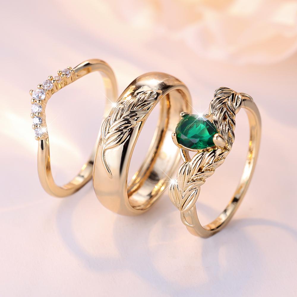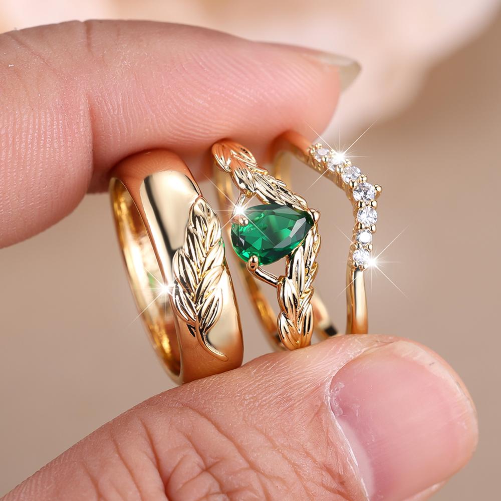 3 шт./компл. модный комплект колец для ушей из пшеницы для женщин, зеленый кристалл, белый циркон, свадебные обручальные кольца, ювелирные изделия для вечеринок