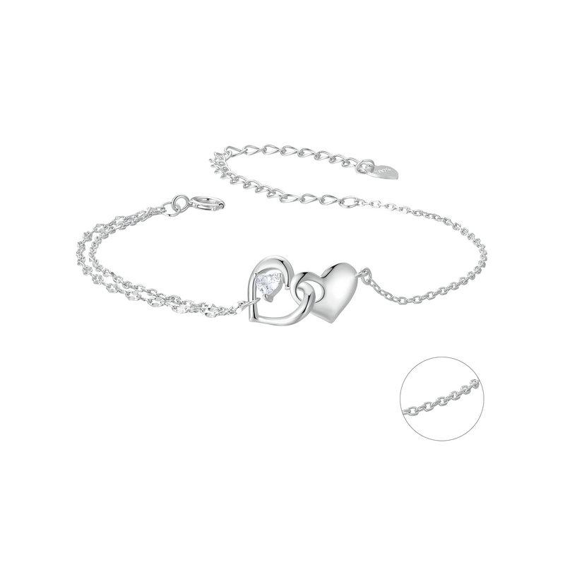 BAMOER стерлингового серебра 925 пробы ювелирные изделия навсегда любовь сердце двойной браслет-цепочка дружба регулируемый браслет подарок для женщин