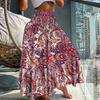 Женская богемная длинная юбка до середины тела с цветочным принтом, свободная повседневная пляжная юбка с высокой талией для отпуска, свободные юбки для праздничной вечеринки