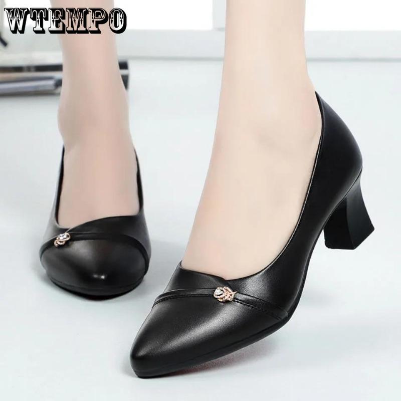 Черные кожаные туфли с острым носком, металлические украшения, неглубокий носок, женские туфли на среднем каблуке, туфли на высоком каблуке для работы в городе, модные однотонные простые повседневные туфли — купить товар онлайн с бесплатной доставкой по всему миру!