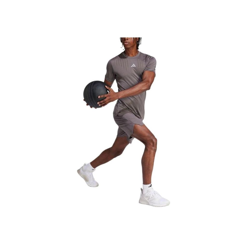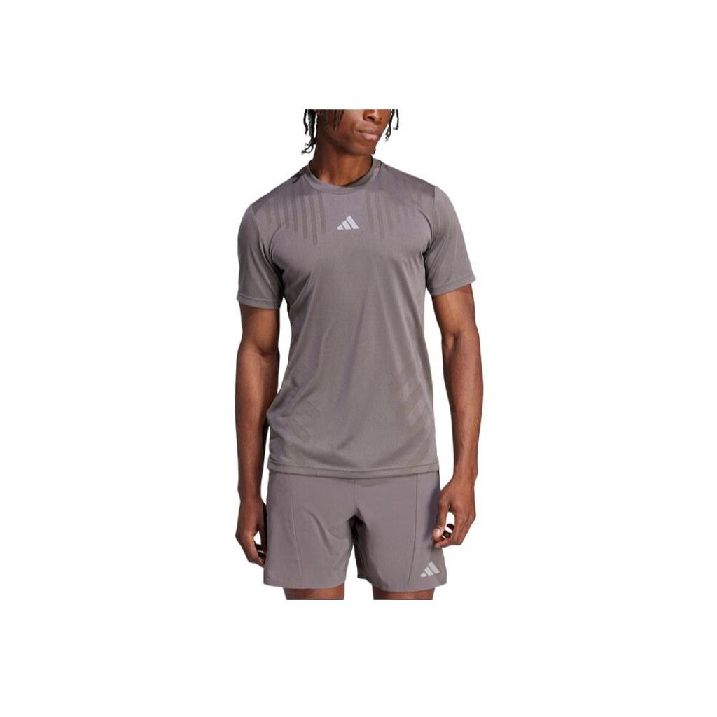 Adidas Повседневная спортивная футболка с логотипом на открытом воздухе и круглым вырезом, пуловер с коротким рукавом, мужские топы, серый IS3735