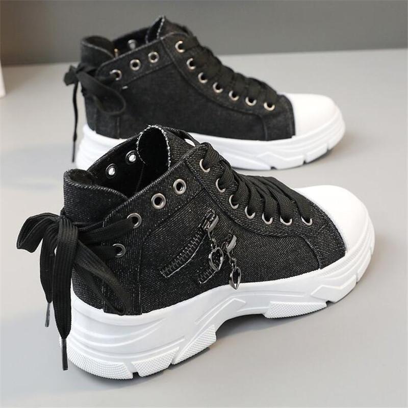 Холстовая женская повседневная обувь, высокие женские кроссовки, спортивная обувь на платформе со шнуровкой для женщин, дышащая модная теннисная обувь