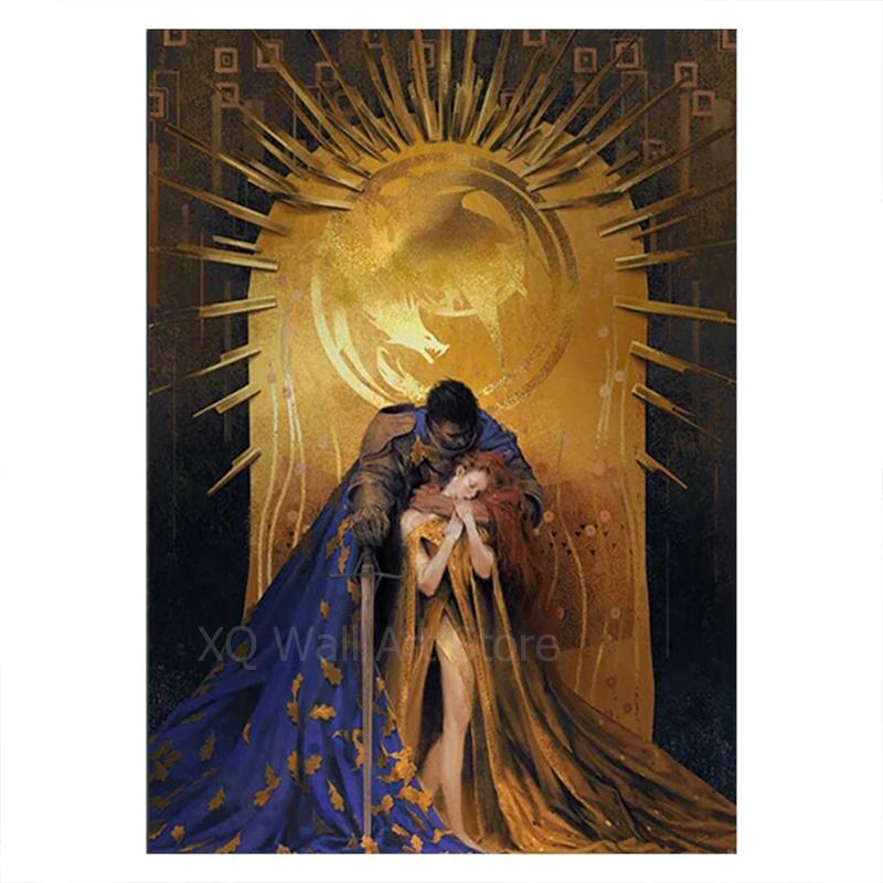 Винтажные золотые художественные постеры под дубом, рыцарь обнимает женщину, холст, живопись, ретро постеры и принты для влюбленных, HD изображение, декор