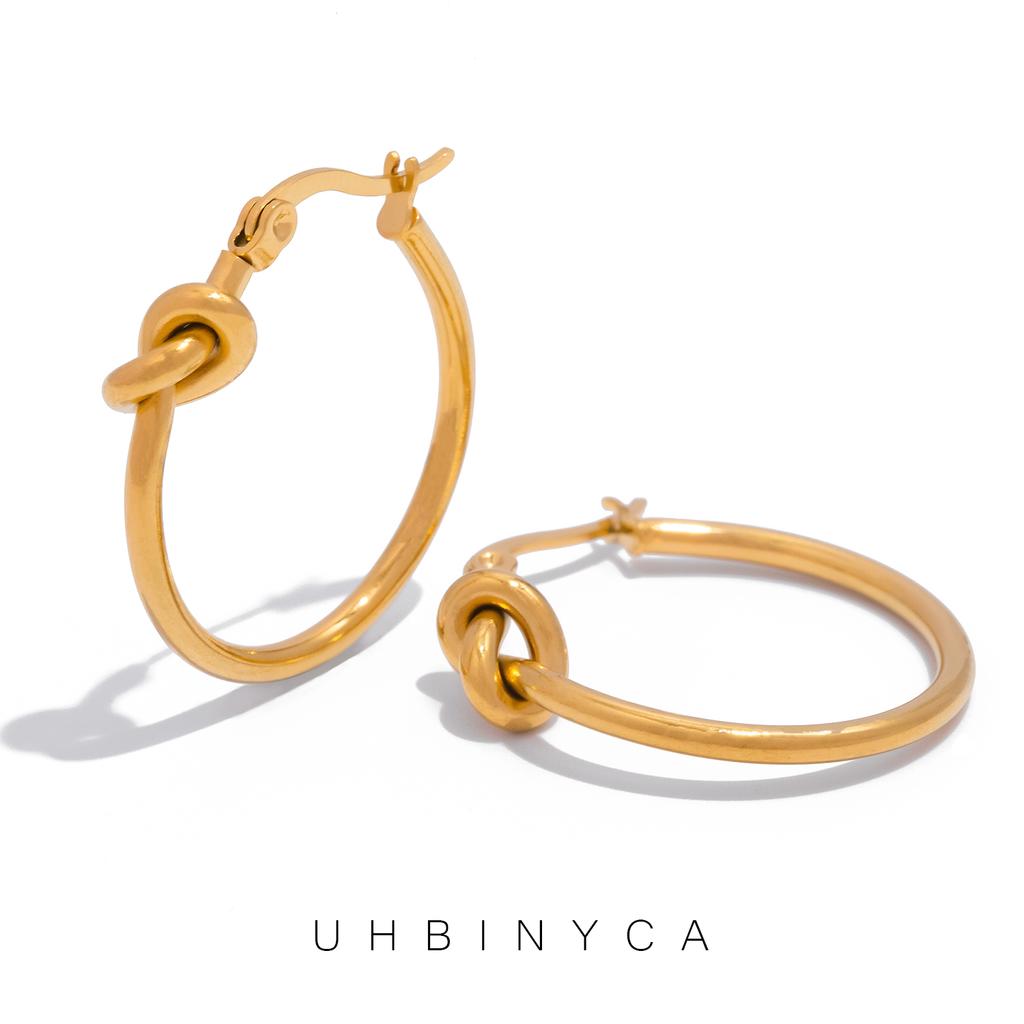 Минималистичные круглые серьги с узлом для женщин, круглые серьги из нержавеющей стали для ювелирных изделий