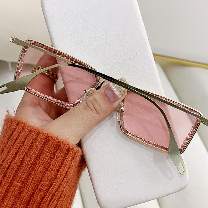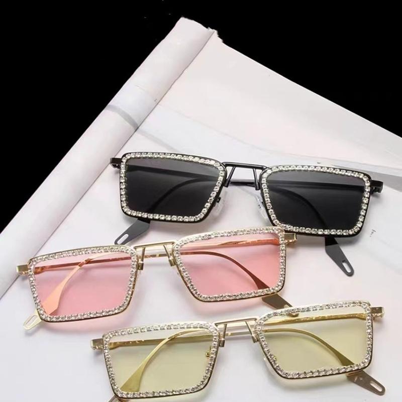 Модные солнцезащитные очки в металлической оправе UV400, женские винтажные прямоугольные линзы, квадратные солнцезащитные очки со стразами, блестящие очки