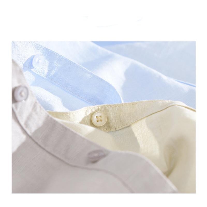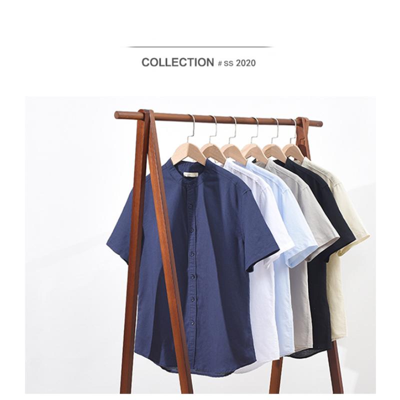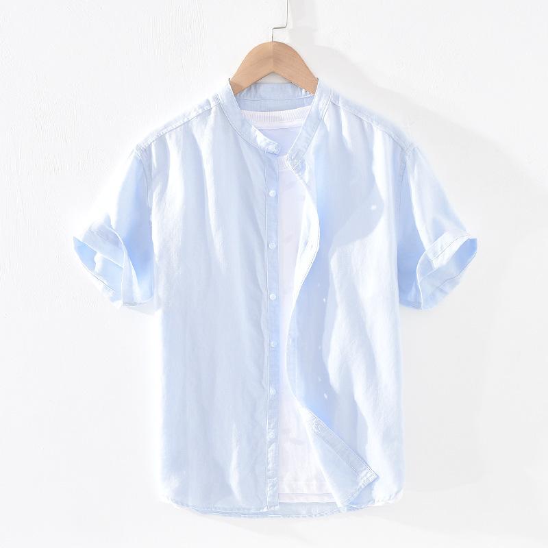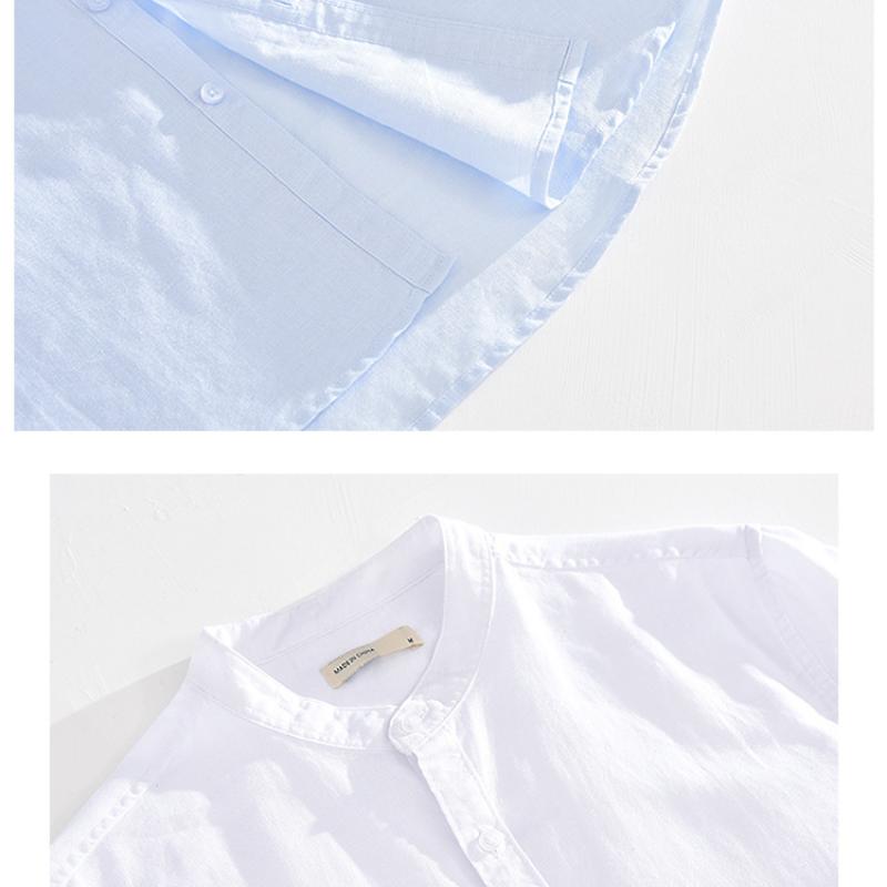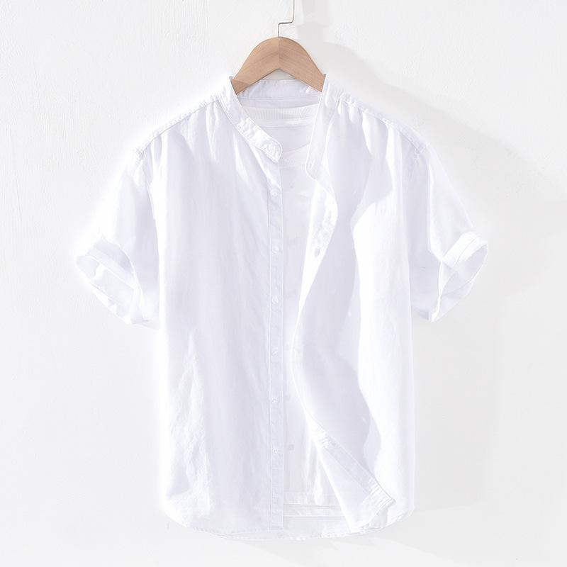 55 льна 45 хлопка рубашки для мужчин пляжные дышащие повседневные мужские топы однотонные облегающие рубашки со стоячим воротником 4XL повседневные рубашки с коротким рукавом летние