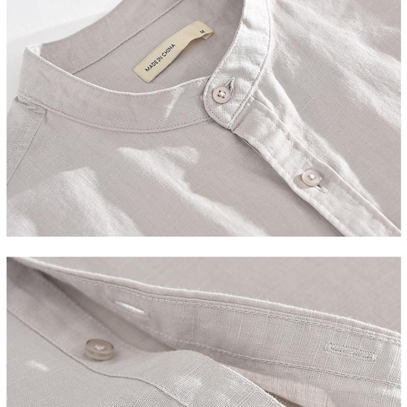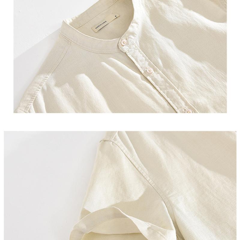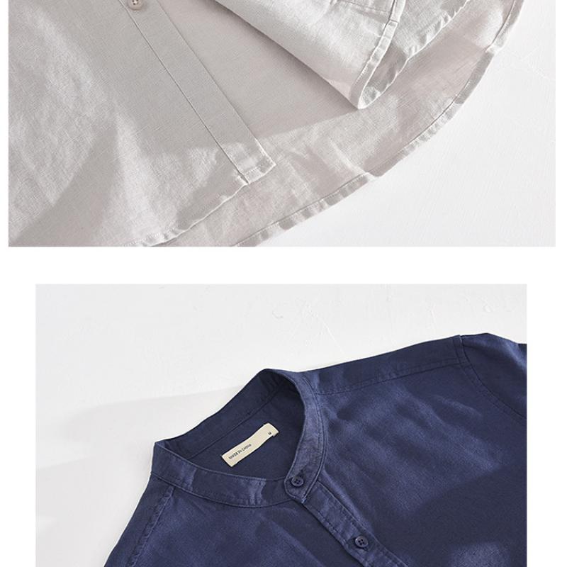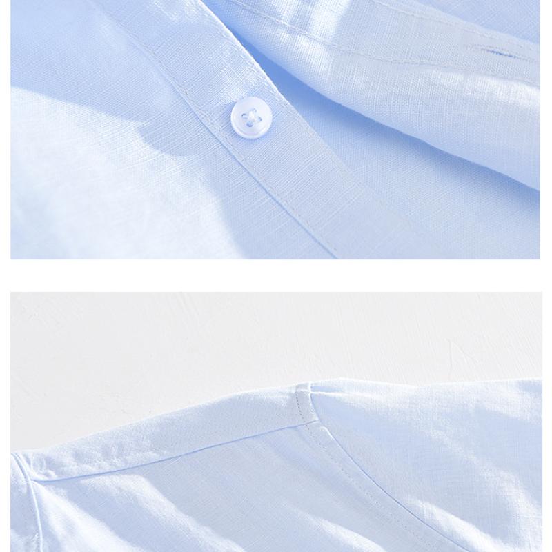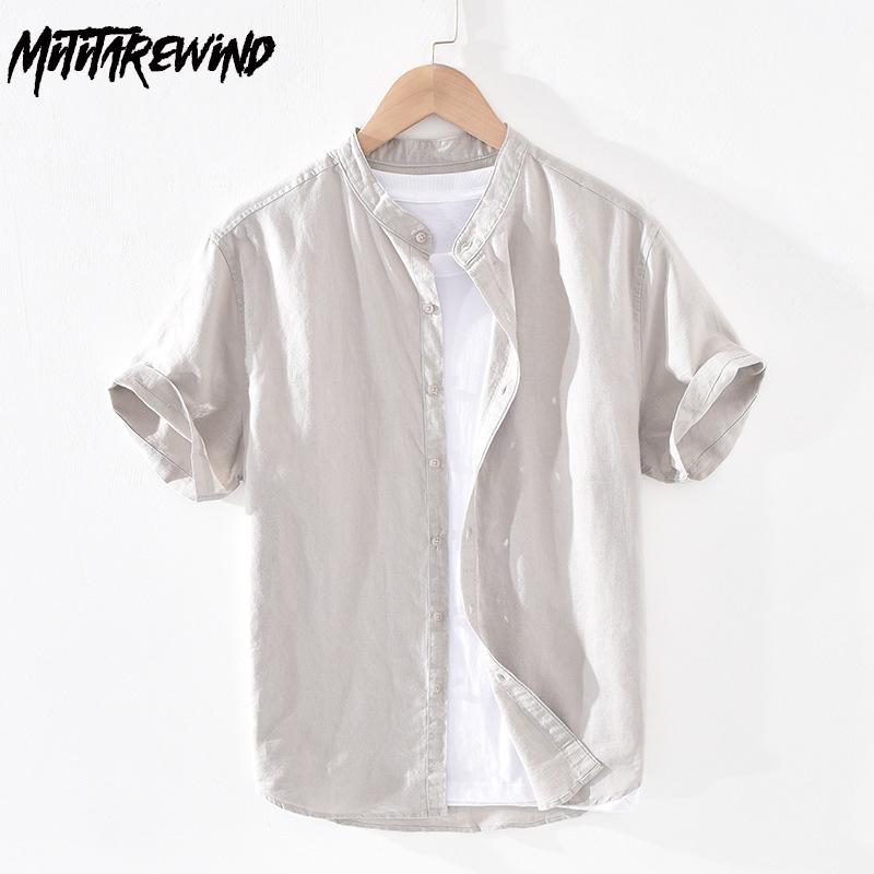 55 льна 45 хлопка рубашки для мужчин пляжные дышащие повседневные мужские топы однотонные облегающие рубашки со стоячим воротником 4XL повседневные рубашки с коротким рукавом летние