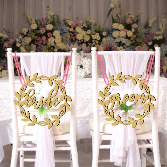 1 комплект табличек на стулья для свадьбы в европейском стиле, деревенские деревянные, полые, многоразовые, декоративные, самодельные, для жениха и невесты, подвесные таблички для вечеринок