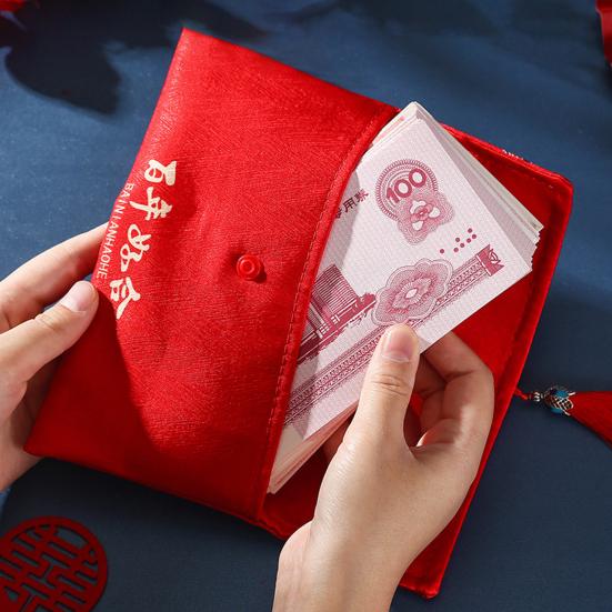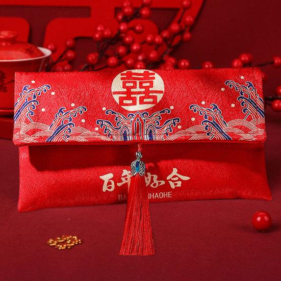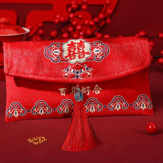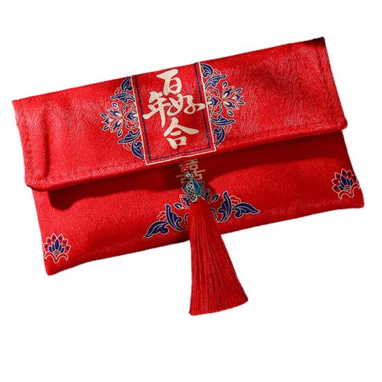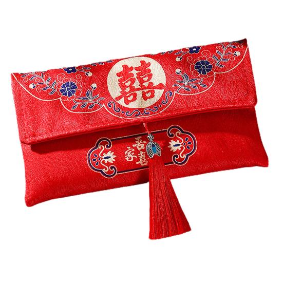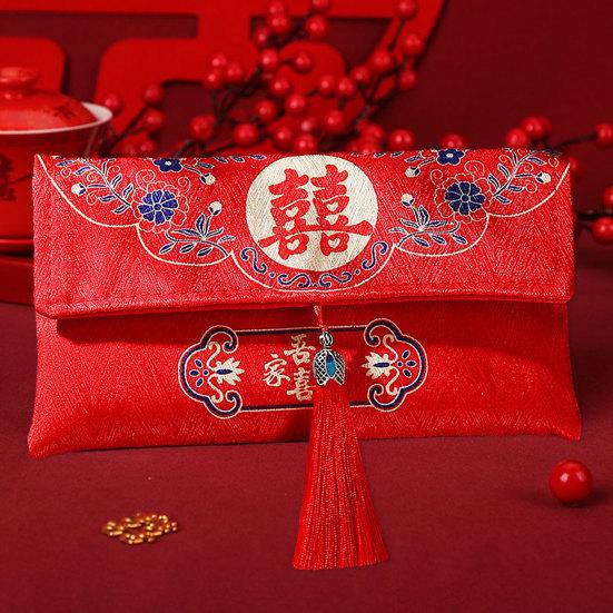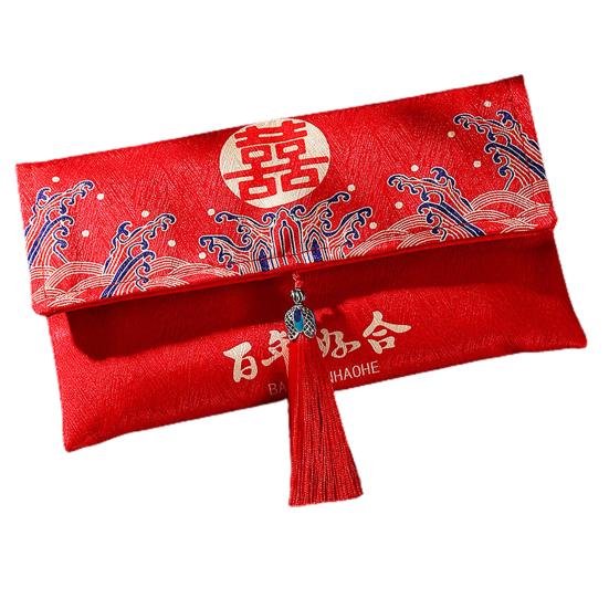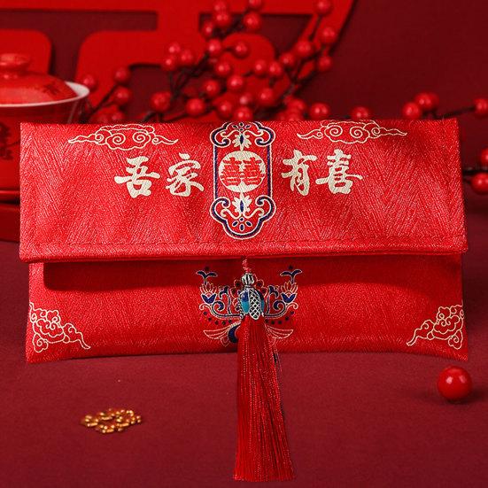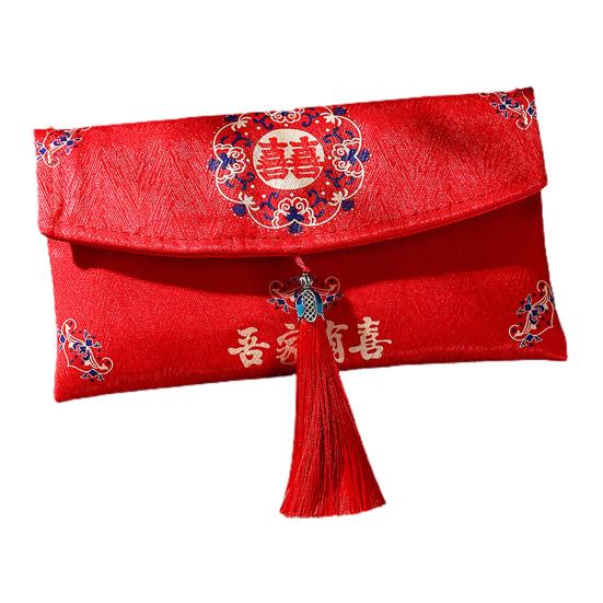 Красный конверт, нежная ткань большой вместимости, художественный дизайн с кисточками, свадебный счастливый карман в китайском стиле для друзей