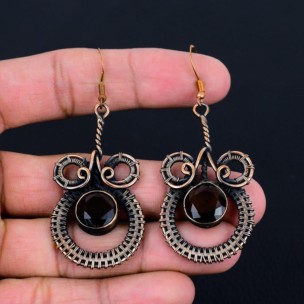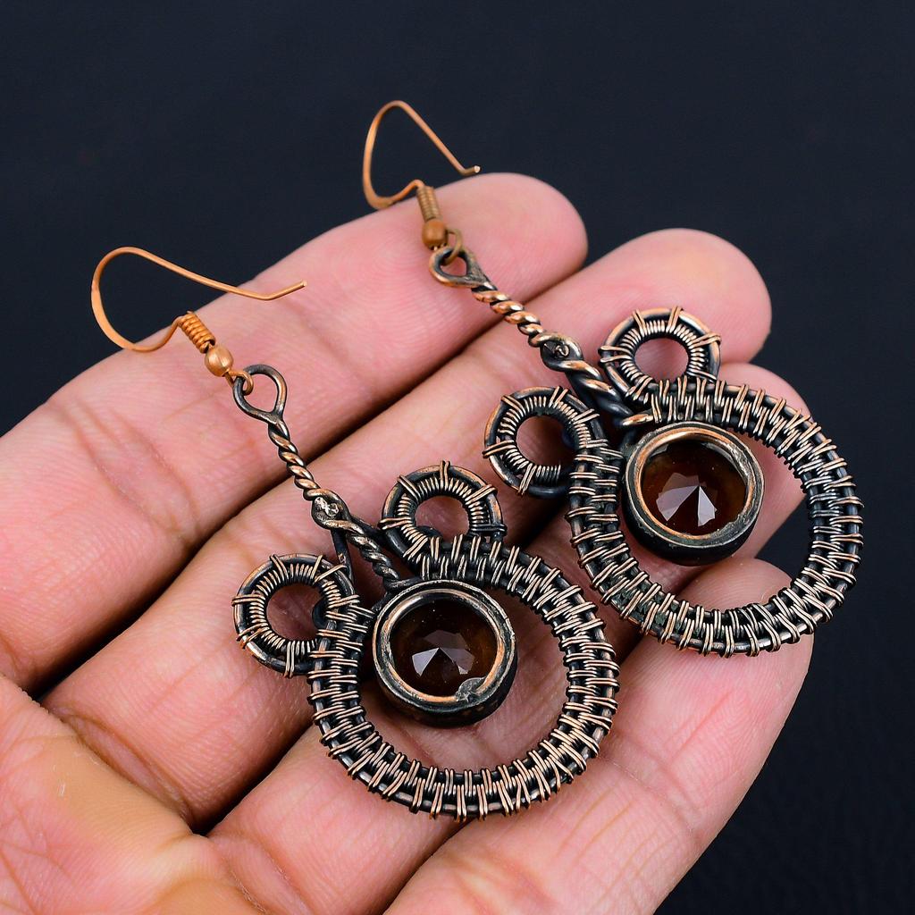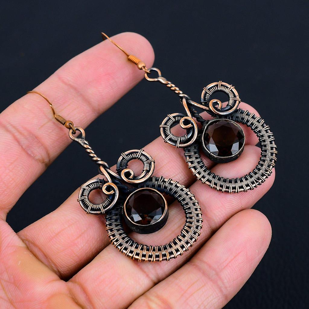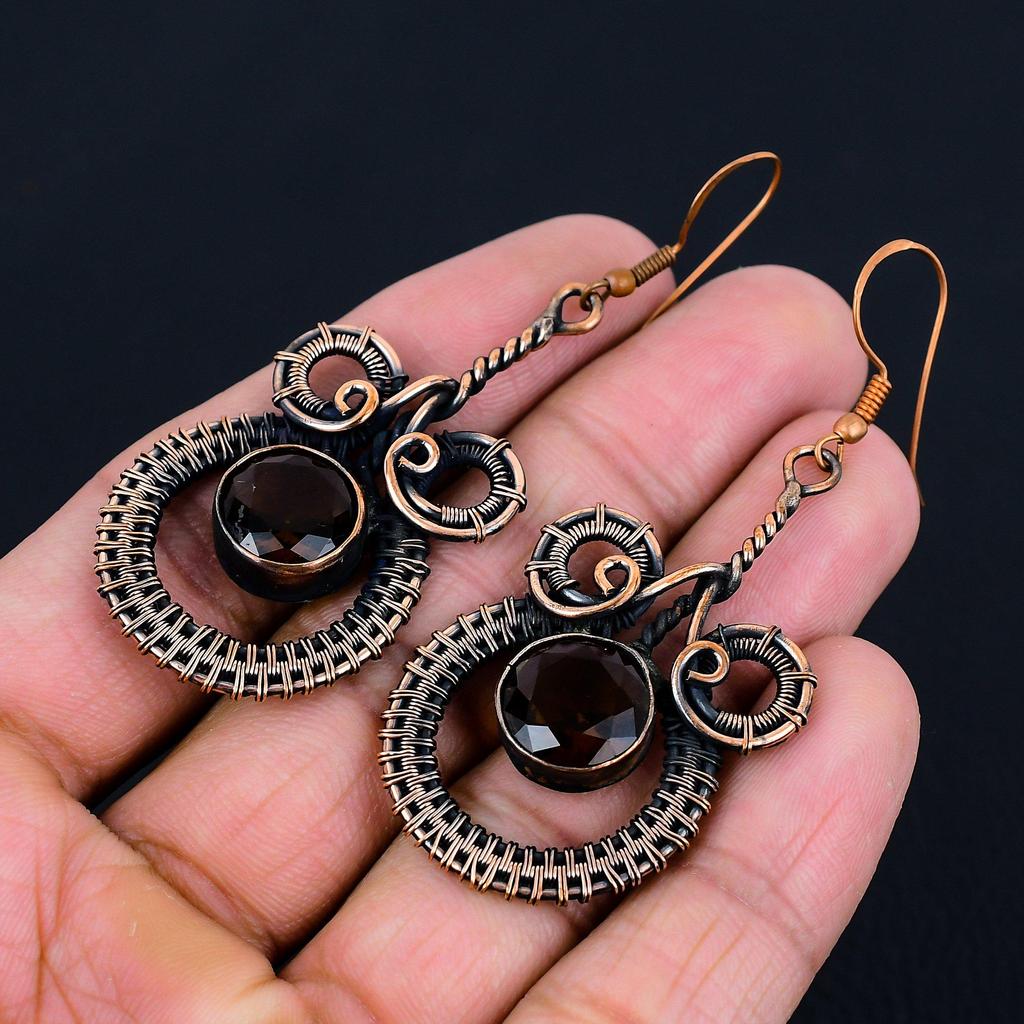 Дымчатый топаз, драгоценный камень, серьги ручной работы из чистой медной проволоки, ювелирные изделия на День памяти