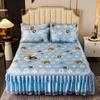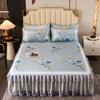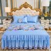 3 шт./лот, комплект двуспальных простыней, классическая кружевная королевская синяя простыня, юбка, можно стирать в машине, свадебное покрывало, наматрасник