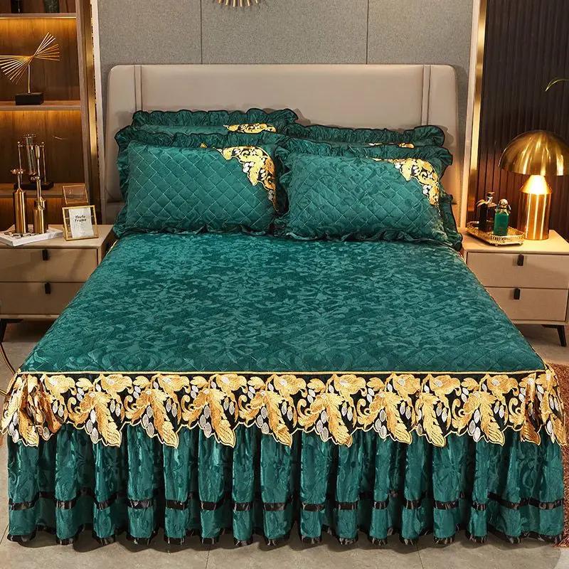 R бархатное утолщенное покрывало, роскошная юбка-кровать, стильные простыни, кружевная вышивка, хлопковый стеганый наматрасник