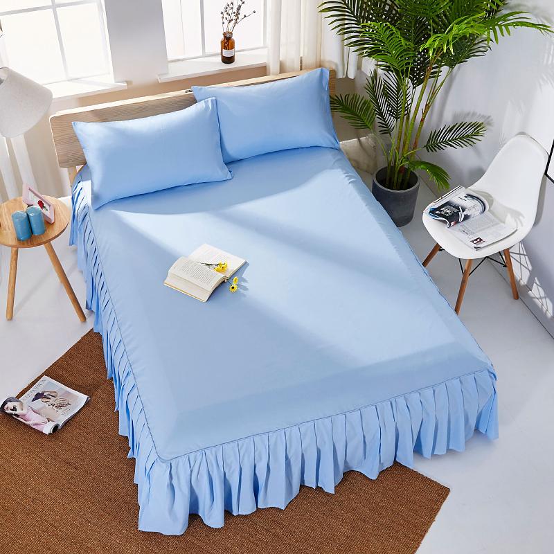 Комплект из 3 предметов: юбки-кровати премиум-класса из микрофибры с рюшами и платформой - трехстороннее покрытие = 1 покрывало + 2 наволочки