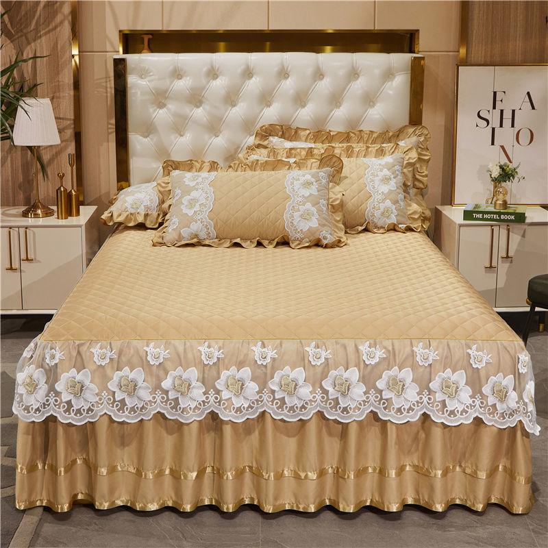 Хлопковая кружевная юбка в европейском стиле, противоскользящее покрывало Ximengsi, цельный толстый наматрасник, комплект из трех предметов — купить товар онлайн с бесплатной доставкой по всему миру!