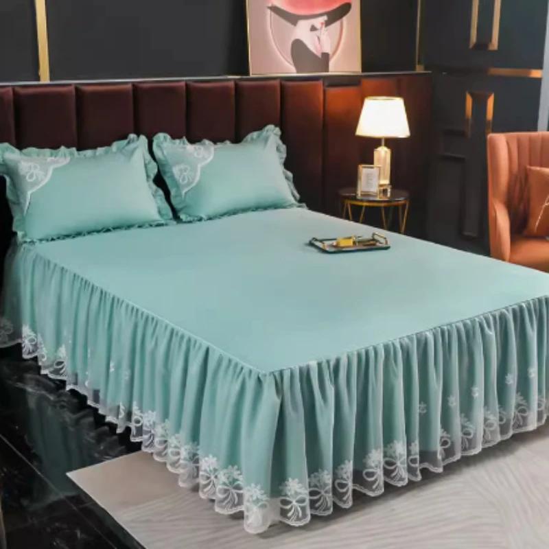 Новая однотонная юбка-кровать в стиле принцессы, кружевной чехол, уродливый фартук для кровати, защитные рукава, универсальны круглый год