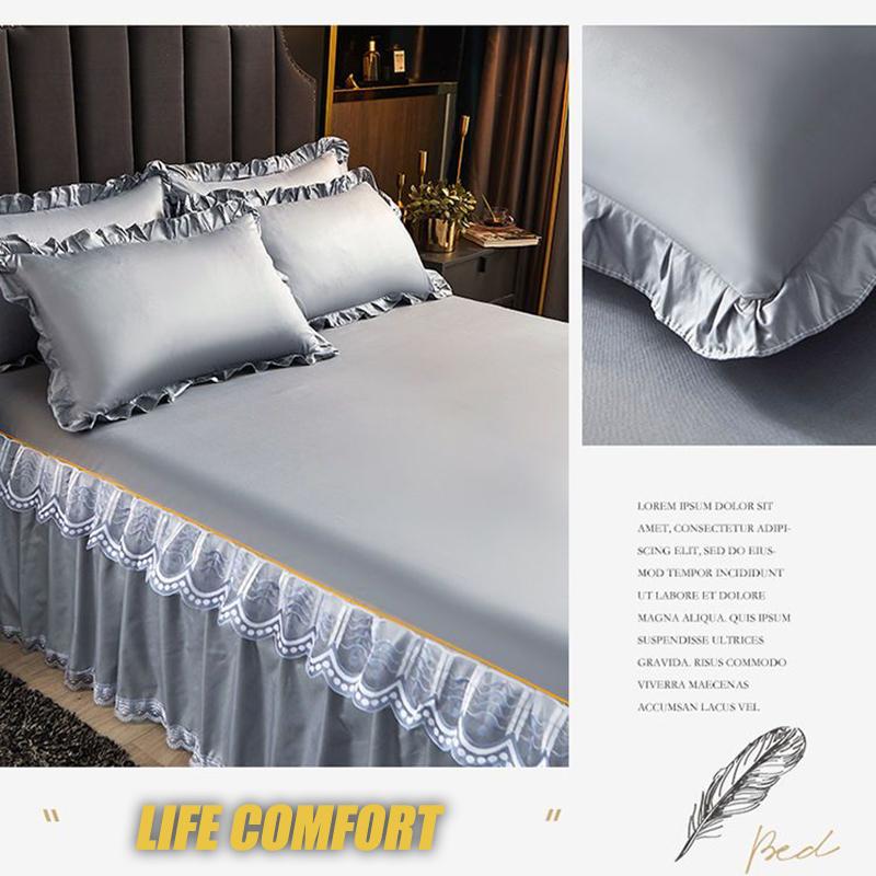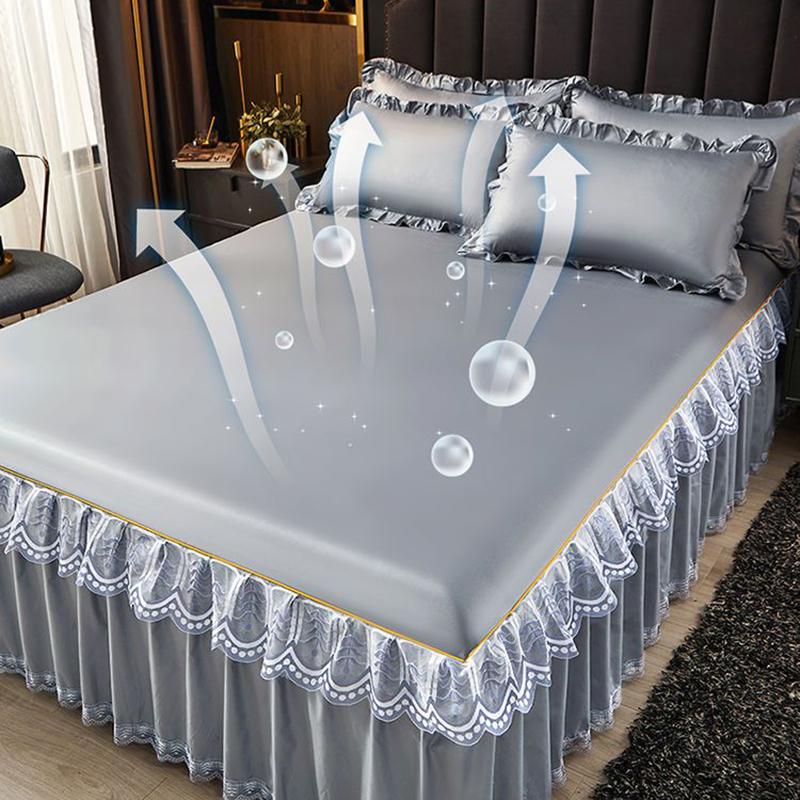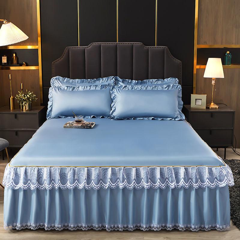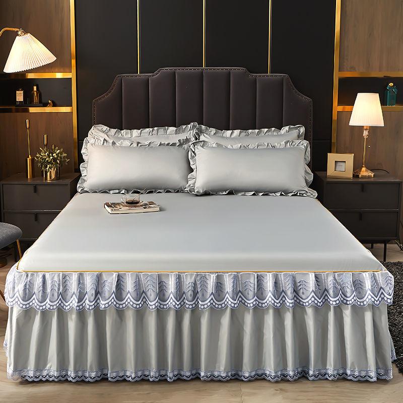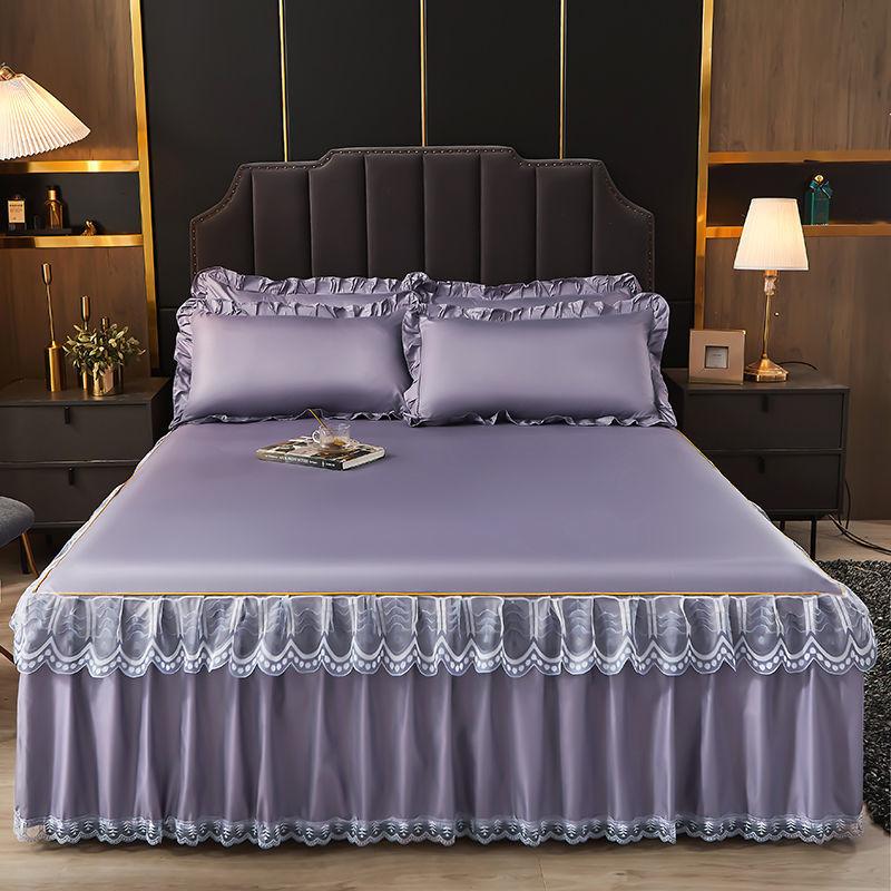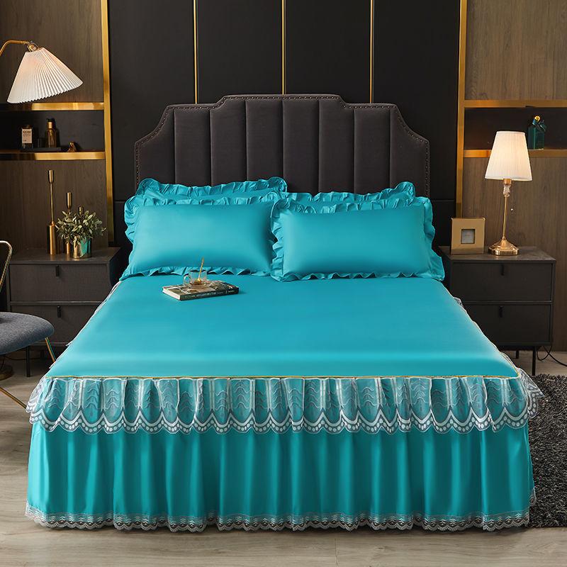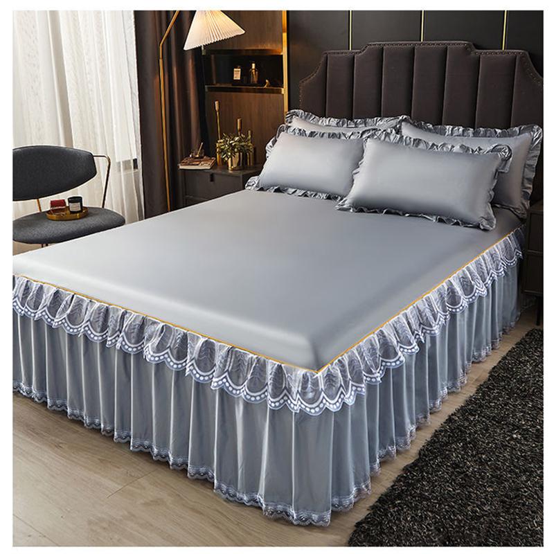 Элегантный стиль, кружевное покрывало, сплошной цвет, юбка-кровать, тип полиэстера, хлопка, комплект постельного белья королевского размера с наволочками