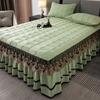Элегантная стеганая утолщенная юбка-кровать, комплект из трех предметов, покрывало размера King Queen, противоскользящее покрывало с наволочкой