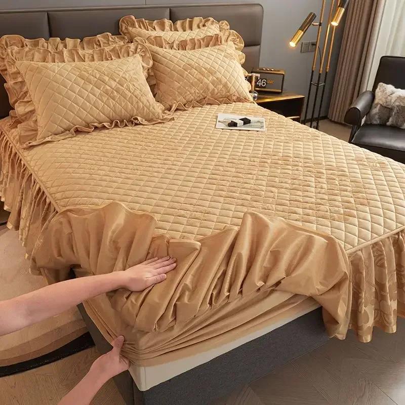 Теплое бархатное мягкое покрывало на кровать, утолщенный хрустальный бархатный пылезащитный полностью завернутый защитный чехол для матраса