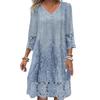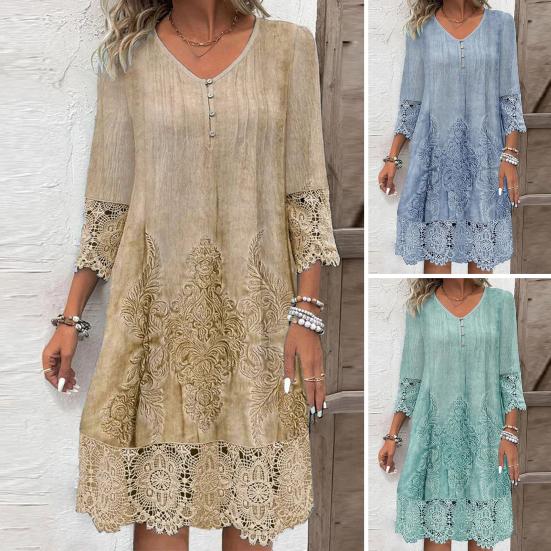 Летнее женское платье с V-образным вырезом и ажурными кружевными пуговицами с рукавами три четверти и вышивкой, сплошное цветное свободное платье длиной до колена в стиле ретро-миди — купить товар онлайн с бесплатной доставкой по всему миру!