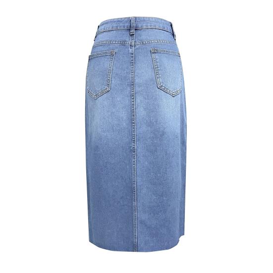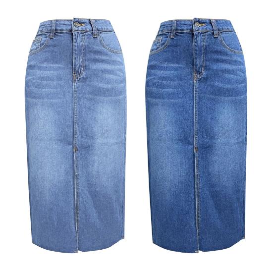 Характеристики: Эта джинсовая юбка застегивается на пуговицы на молнии на талии, карманы по бокам и сзади, а также юбка А-силуэта с разрезом по центру.