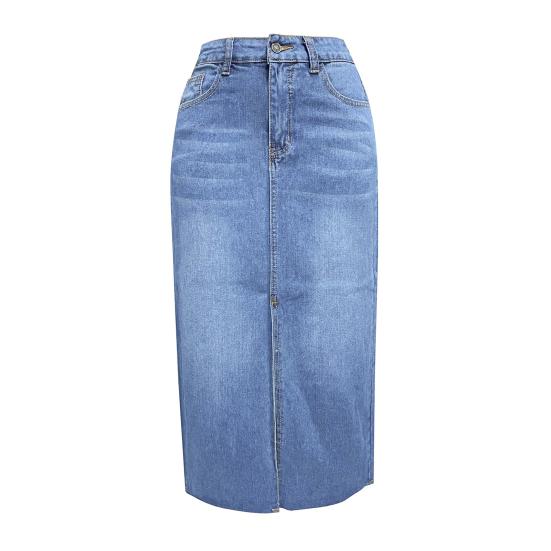 Стиль: Улучшите свой гардероб с помощью этой шикарной джинсовой юбки с высокой талией, сочетающей в себе модный стиль и неподвластную времени элегантность.. А-силуэт с разрезом по центру придаст вашему образу изысканность.